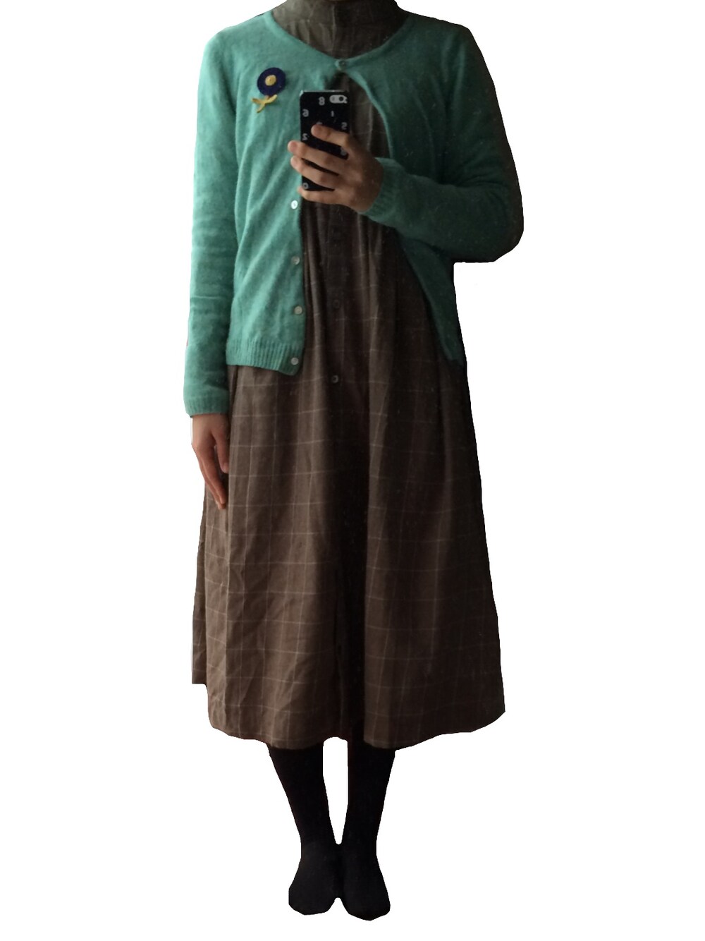 ニットカーディガン:ehka sopo 最近このワンピース着ている人を WEARでよく見かけるので 私も着たくなりました👯💕 モデルさんが着ると膝くらいなのに 私が着ると膝下に、、、(笑)
