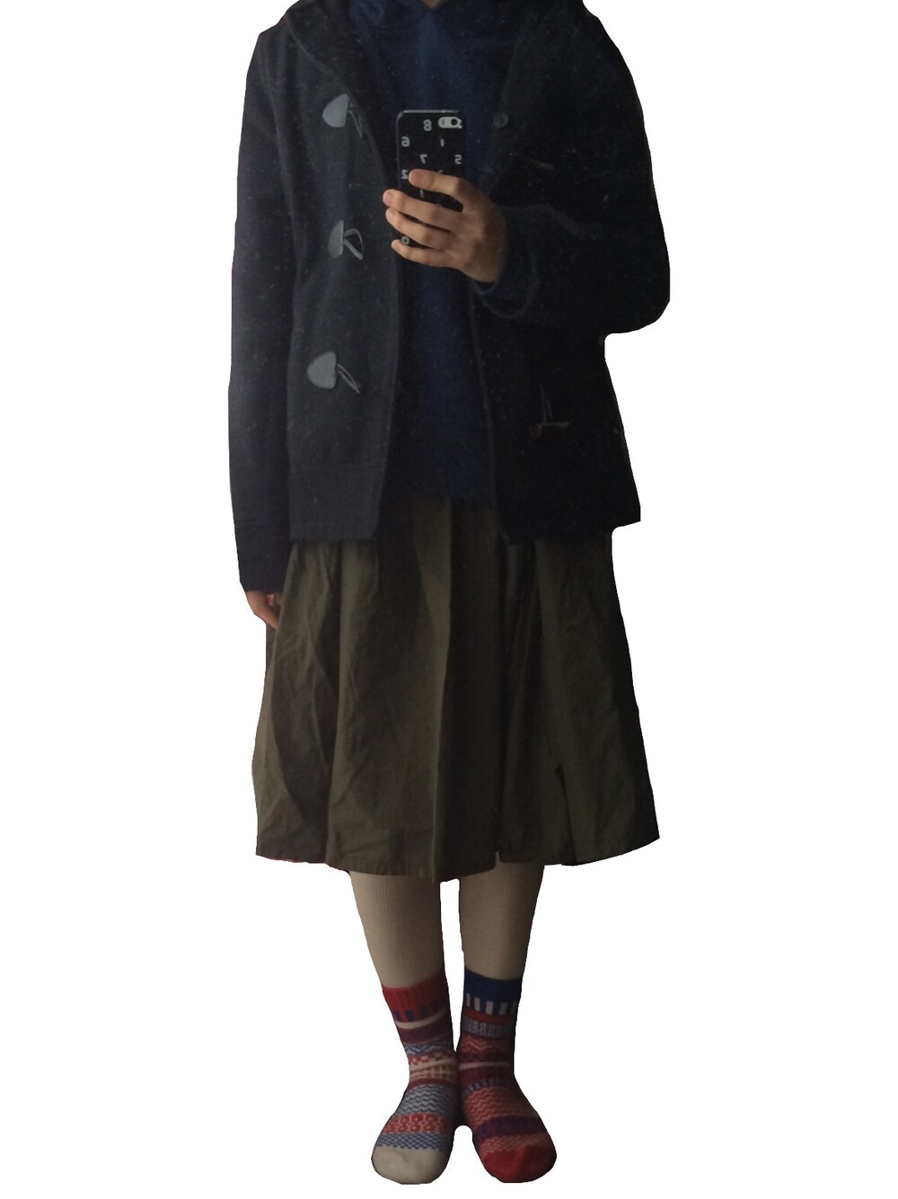 ダッフルコート:garden スウェットパーカー:garden スカート:earth 靴下:チチカカ 最近朝起きられません、、 寝坊してばかりです😞 さぼり癖がついてしまいそうなので そろそろちゃんとしよう😶
