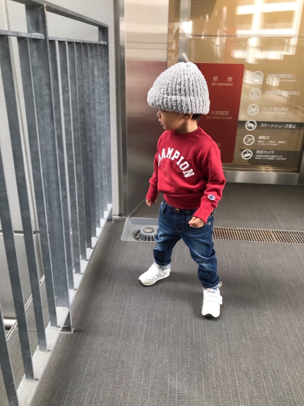 トップス100cm ボトムス95cm 2歳5ヶ月 91cm13.3kg 今日は駅前に買い出し👕👖 駐車場から小田急線が見えるので 毎回、興奮します🚃〃 すっかり寒くなりましたね❄