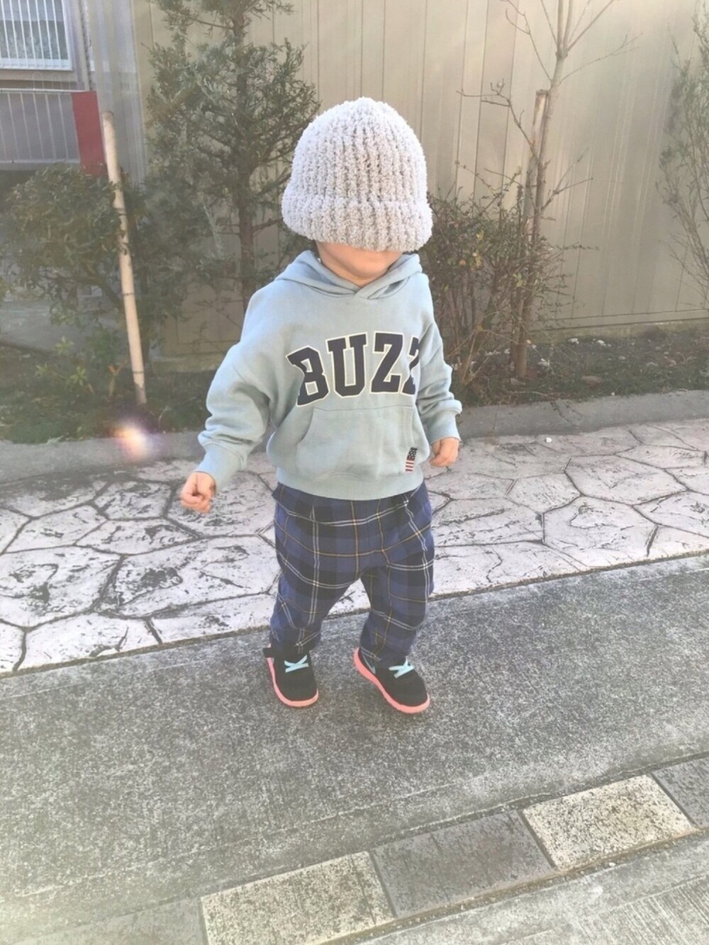 トップス100 ボトムス90 2歳半 91cm13.3kg 見ていただき、ありがとうございます! 秋口にバースデイで取り寄せをお願いした、バズのパーカー♡ (とても素敵で優しい店員さん、その節はありがとうございました。) ダークグレー?とこの色で悩んで、こっちのくすみブルーをチョイス☺︎ 何にでも合わせやすいし、なんてったって息子が大好きなバズが背中に書いてある🚀💫 お気に入り⸜(*ˊᗜˋ*)⸝ ぐちゃぐちゃ(ニット帽)をこーやって顔にかけて、爆笑しながら走り回る危ないヤツ🤣