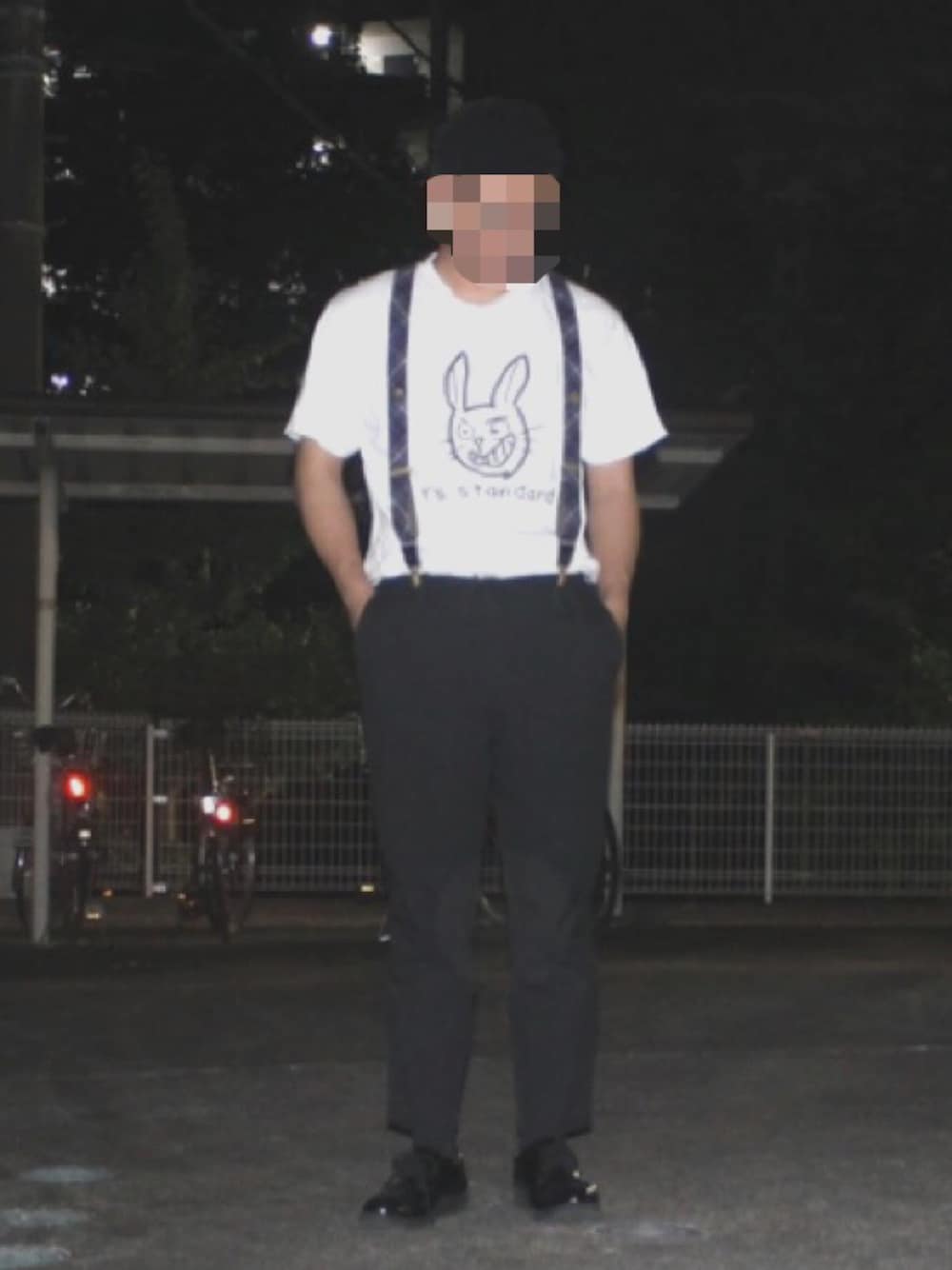 うさぎTシャツを使ったコーデ🐰 チェック入りのサスペンダーが差し色になって可愛いです😊 キャラTは子供っぽくなりがちですがY'sのうさぎさんは使い方によっては大人でも大丈夫です👌