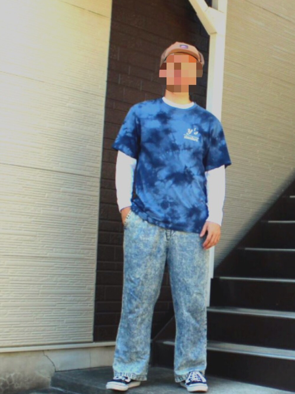 タイダイTシャツを使ったレイヤードスタイルのストリートコーデ! ボア付きのキャップが可愛らしいですね🥺