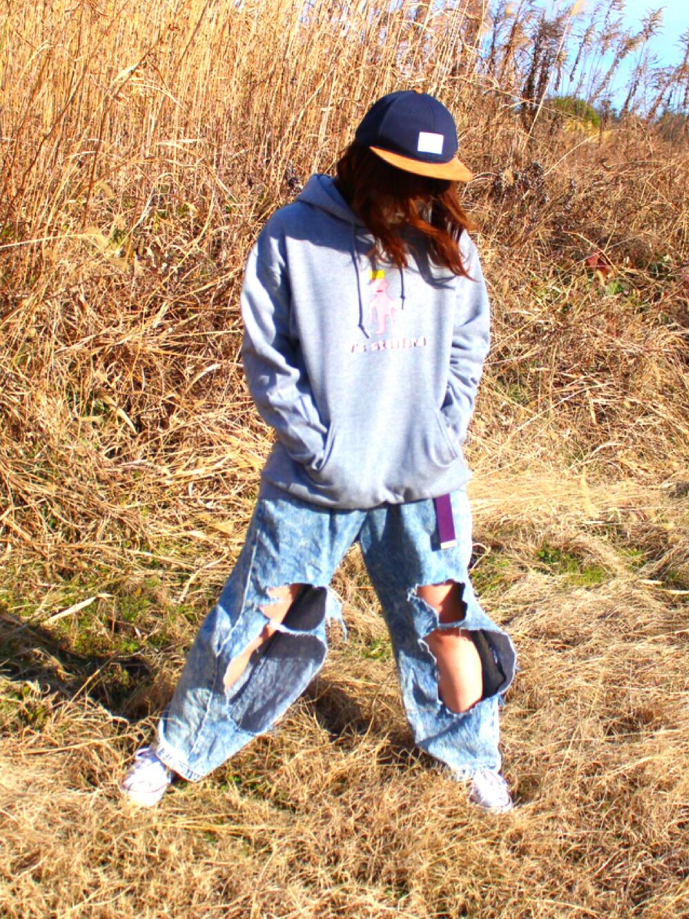 同じアイテムを使っても何と合わせるかで印象が全然違ってきます! こちらは大幅なダメージを入れたパンツと合わせてみました😳