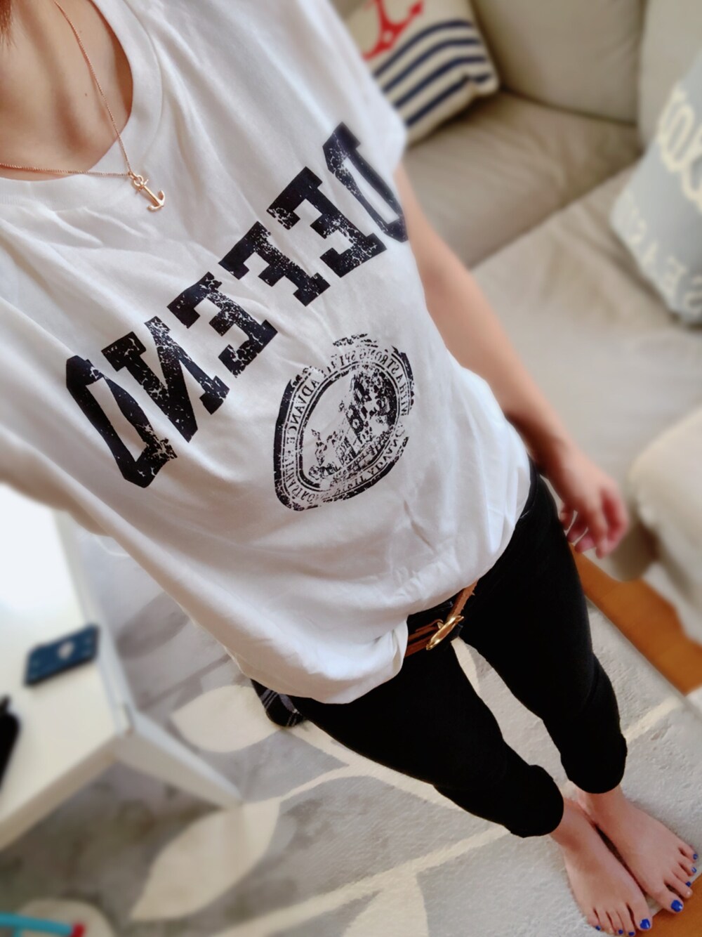 . 今日めっちゃ暑い、、、 . 節約期間中のため、(笑)今日も 食料の買い出し予定しかないので お得意のシンプルcoordinate🤓 . Tシャツは、こないだHoneysで 2枚980円で売ってたやつ😂🙏🏻❤️ 地味にTシャツなかったけん、充分🙆♀️