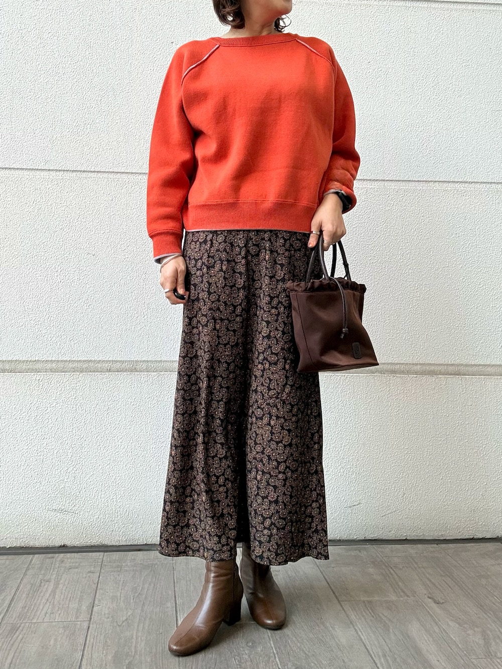 オレンジが春らしいリバーシブルのニットです🍊