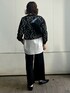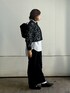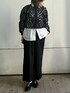 ITEMSの上品なレーストップスにシャツをレイヤードした、きれいめモノトーンコーデ💫 ワンタックワイドパンツもITEMSです✨
