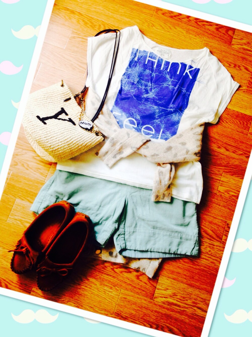 Tシャツ☆ZARA Sパンツ☆GREEN LABEL RELAXING ニット☆OLIVE des OLIVE モカシン☆MINNETONKA バッグ☆ブランド不明 本日、初投稿デス☆ 大人カジュアル目指してます‼︎ 海、行きたいな〜♪