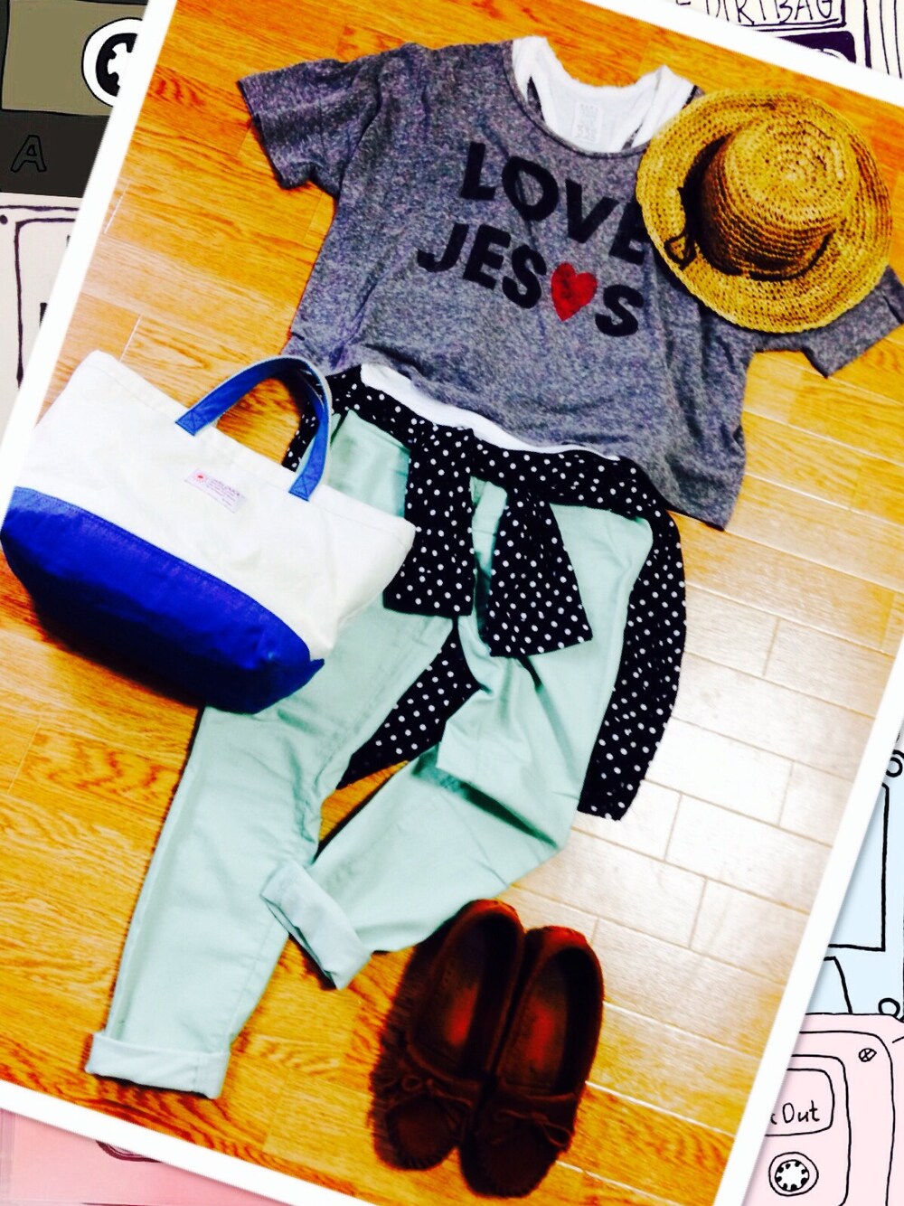 ゆみんのハット「ストローハット 」を使ったコーディネート
