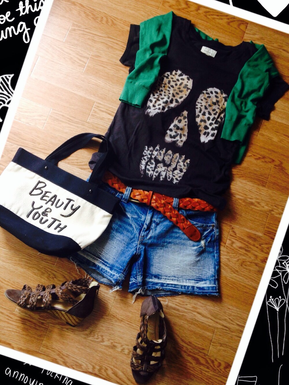 Tシャツ☆ZARA カーディガン☆GAP Sパンツ☆ブランド不明 サンダル☆ブランド不明 このTシャツみんなに、コワイ〜‼︎って言われます…💦