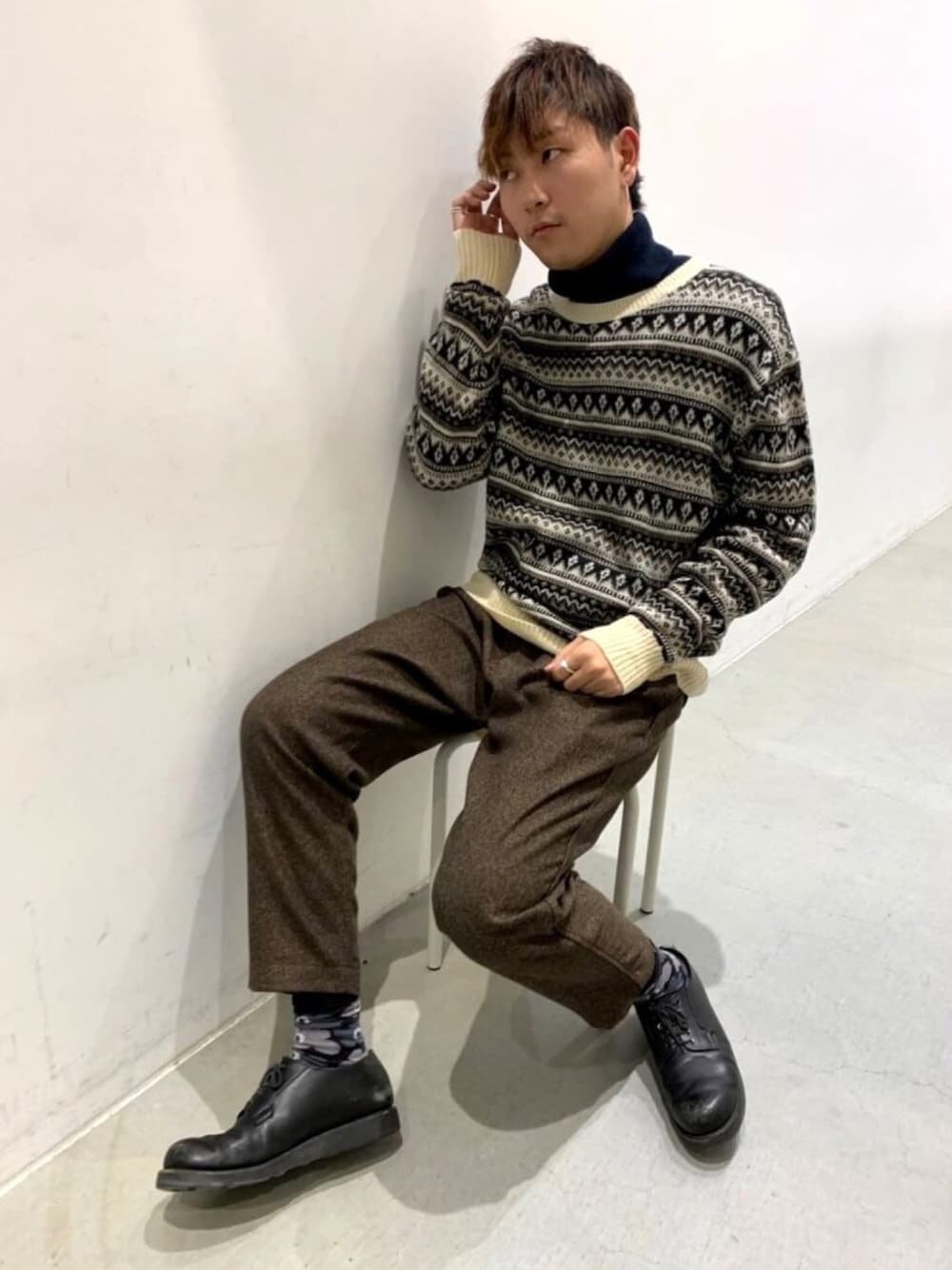 【koe AW correction】 今回はジャガードニットにタートルを忍ばせたコーデにしてみました✨ レトロな雰囲気が出ていい感じです!