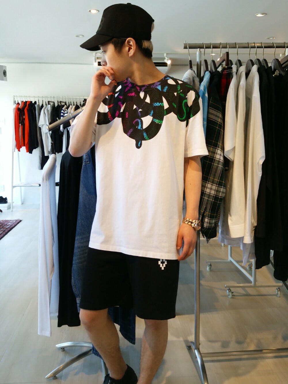 MARCELO BURLON 17AW 第一弾入荷しましたー! ブランドを象徴するスネーク柄のカットソーですが、今シーズンは配色がマルチカラーにアップデートされました! 左右で色の配色が反対色になっており、グラデーションがとても綺麗です! 今までのデザインは引き続きながら新しいデザインを差し込んでいて定番ながらとても新鮮なアイテムです!