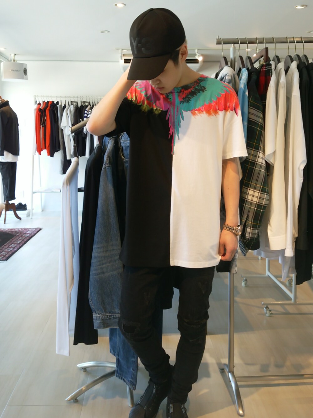 MAECELO BURLON 17AW 第一弾入荷しましたー! 昨シーズンも人気が高かったハーフ&ハーフシリーズ です! 昨シーズンはフェザーの部分もブラックとホワイトでしたが今回はビビッドのマルチカラーです! 存在感がかなり増してめちゃめちゃかっこいいです!