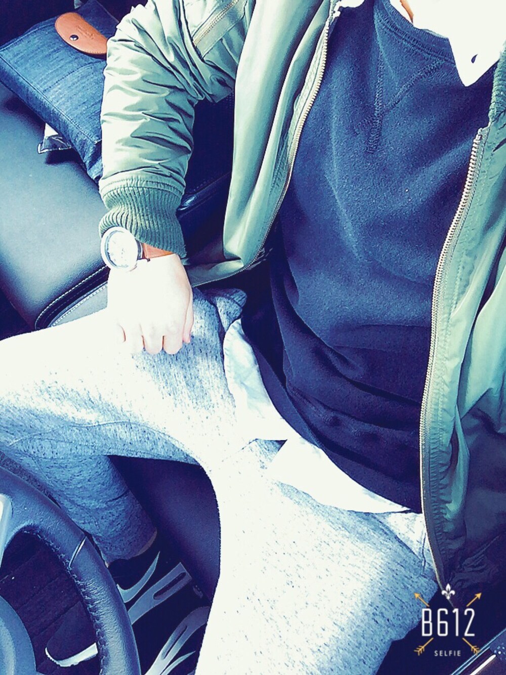 今日は友達が大阪から⚾️のキャンプにきてるので地元の野球場に向かってます(^^) まだ寒いのでMA-1に黒スウェットを合わして下はスウェットパンツに! パジャマ感が出ないように上はシャツをインしました(^^)