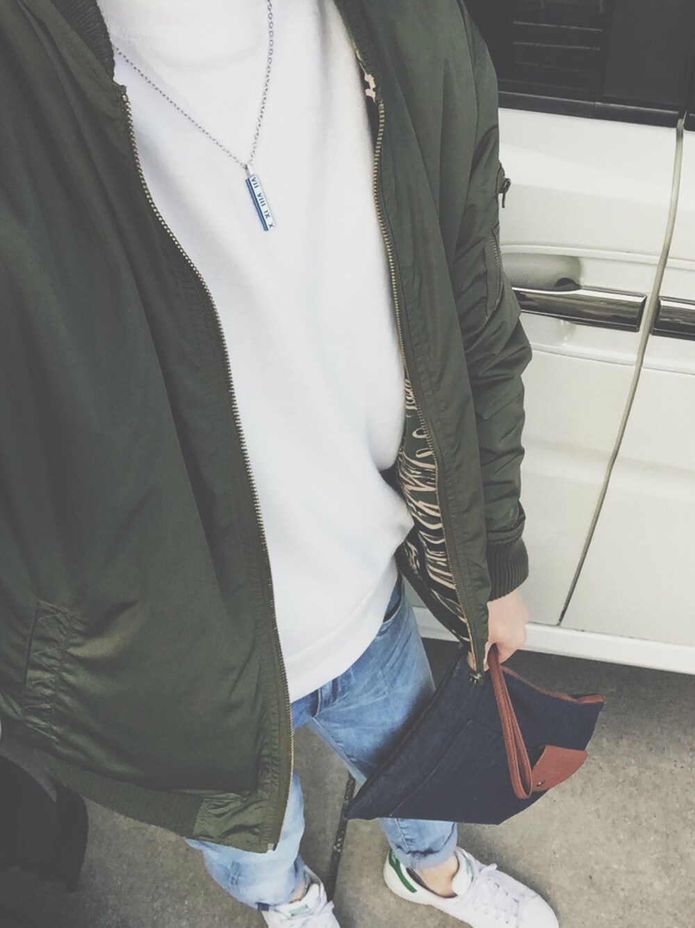 こんにちは!!(^^) 今日はカーキーのMA-1とデニムを合わしてみました!! いつも通りのシンプルさです😂 このクラッチバックはとても気に入っているのでいつもiPadや教科書を入れて英会話に行ったりしてます!! 今日もこれから英会話に行ってきます🚶 良かったら覗いて行ってください☺️