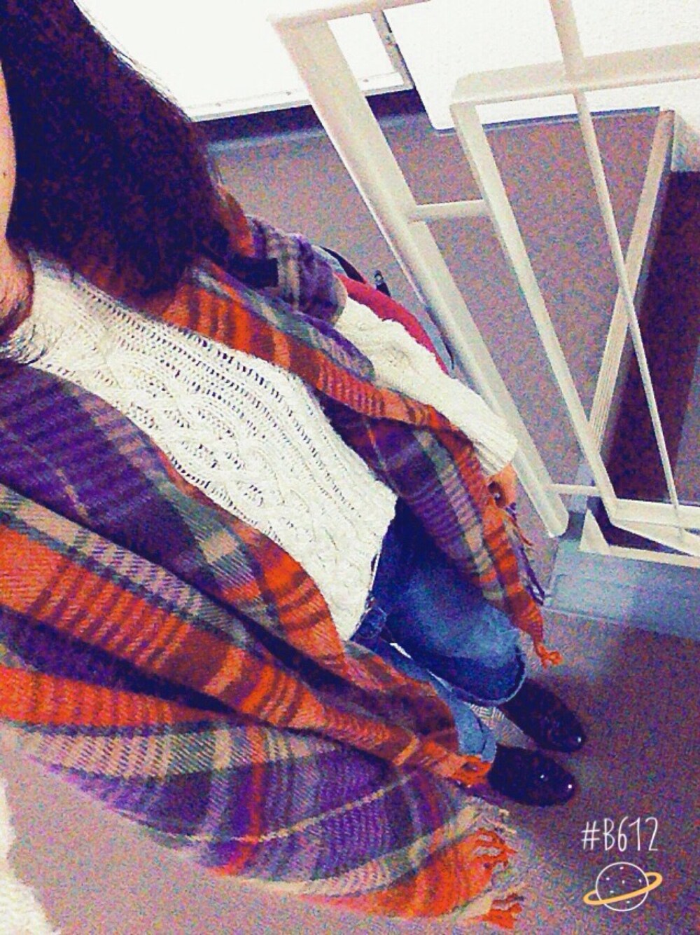 お久しぶりです♪ セーター着ました❤︎ ちょっと寒かったのでストール羽織ってみました🍃 このパンツは裾が広がってるやつで、ずいぶん前から家にあったので勝手に着ました😁