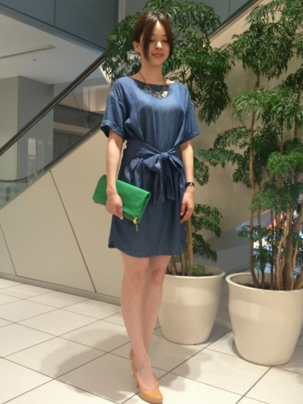 スタッフのワンピース「2wayテンセルデニムフロントリボンワンピース」を使ったコーディネート
