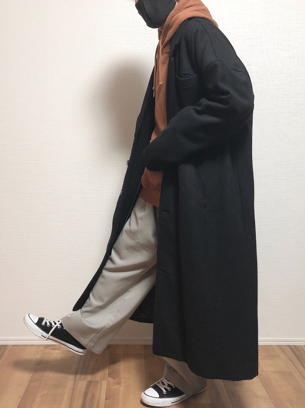 ご覧頂きありがとうございます😊 コート×パーカー×スラックス この二、三年でハマった オーバーサイズコートコーデ 膝下丈必須! ただちょっとこのコートは 重いです💦 ガッツリコートの時期なので 膝下丈のコートオススメです👍 ○サイズ○ ・アウター F ・パーカー M ・パンツ S ・靴 26