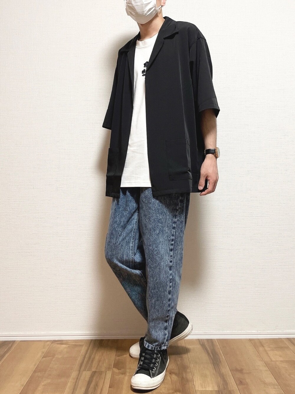 ご覧くださりありがとうございます😊 「サマージャケットを使った 夏のカジュアルコーデ」 薔薇のチラ見せと コットン素材のパンツ×スニーカー合わせが ポイントです👌 夏にきれいめ要素がほしい時には サマージャケットオススメですね♪ ○サイズ○ ・アウター M ・Tシャツ S ・パンツ M ・靴 S
