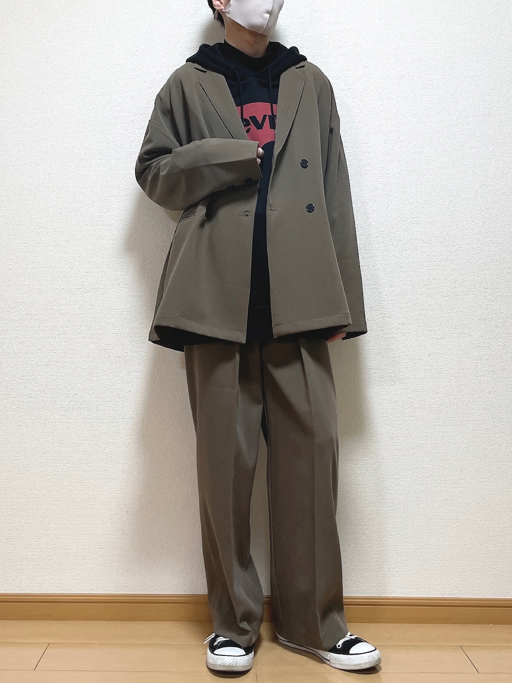 ゆうのテーラードジャケット「ルーズダブルジャケット【ユニセックス対応/セットアップ可】」を使ったコーディネート
