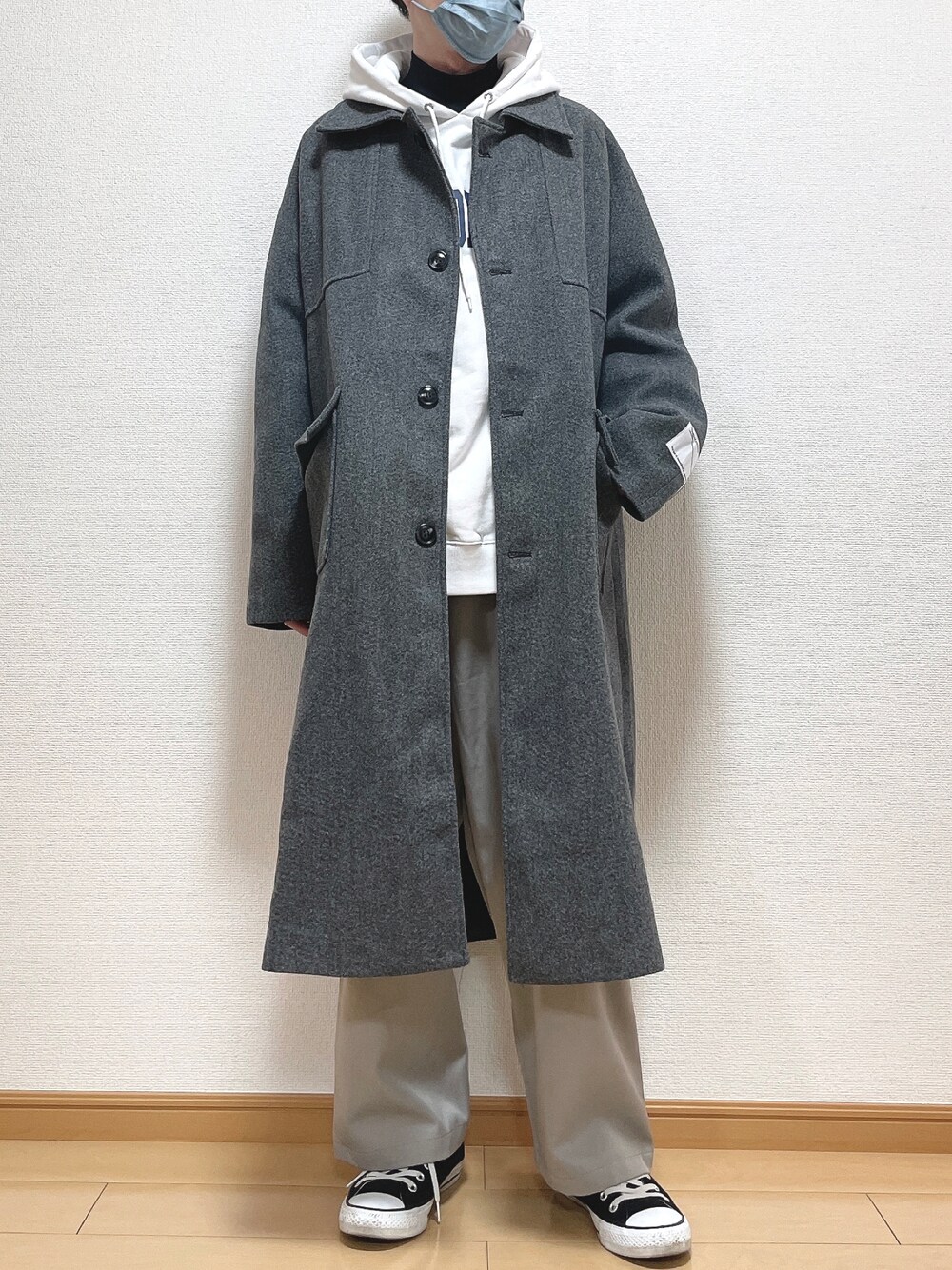 ゆうのステンカラーコート「V-THREESOUTIAN COLL COAT/オーバーサイズ ステンカラーコート」を使ったコーディネート