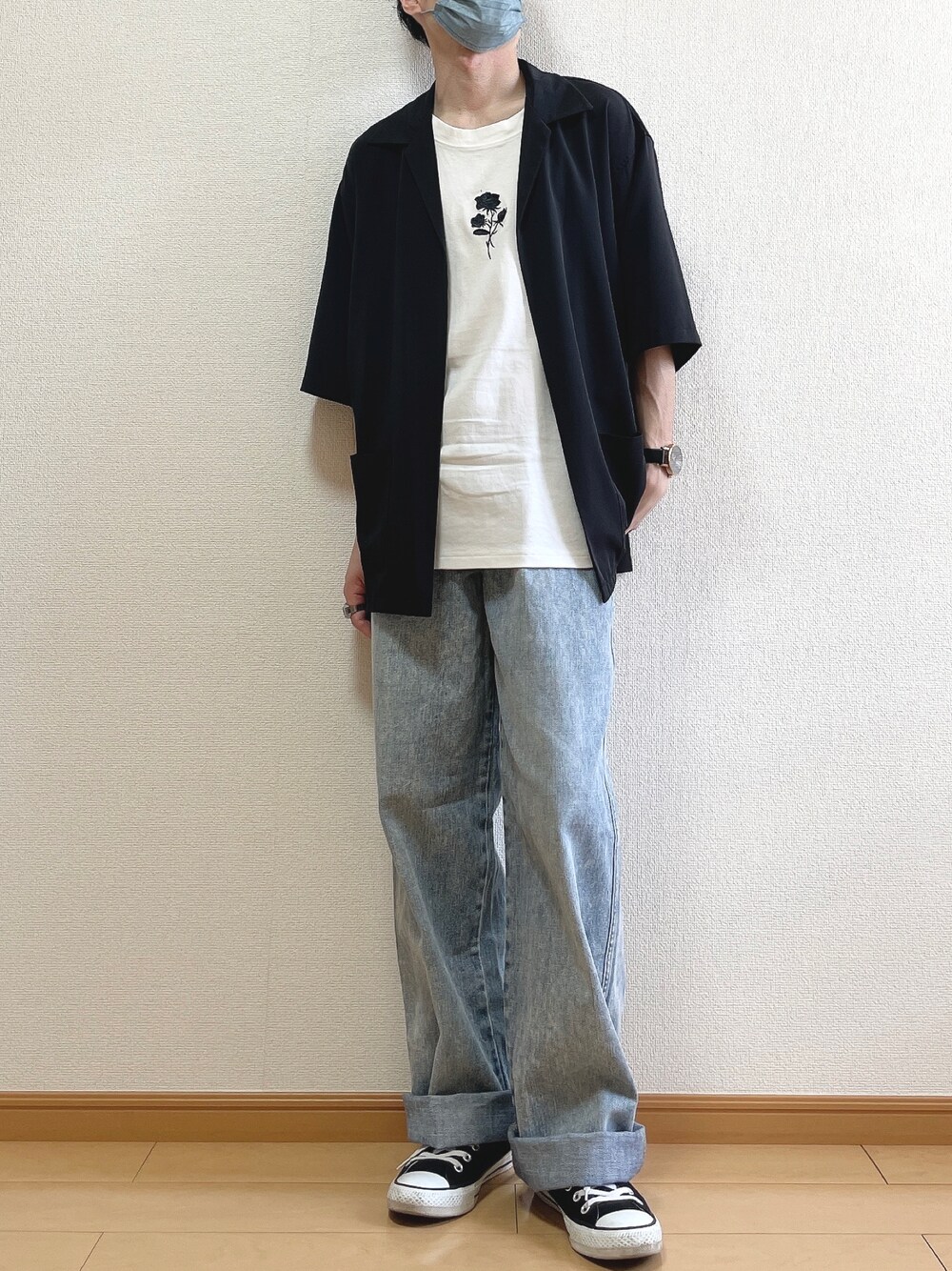 おはようございます😊 今回は 「夏の王道3色コーデ」 青、白、黒は間違いない配色かと! サマージャケットがあることによって カジュアルすぎないのでオススメ!! このデニムは久々に履いたけど やっぱりよき🙆♀️これからの時期にピッタリ! [サイズ] ジャケット L Tシャツ S パンツ S 靴 26