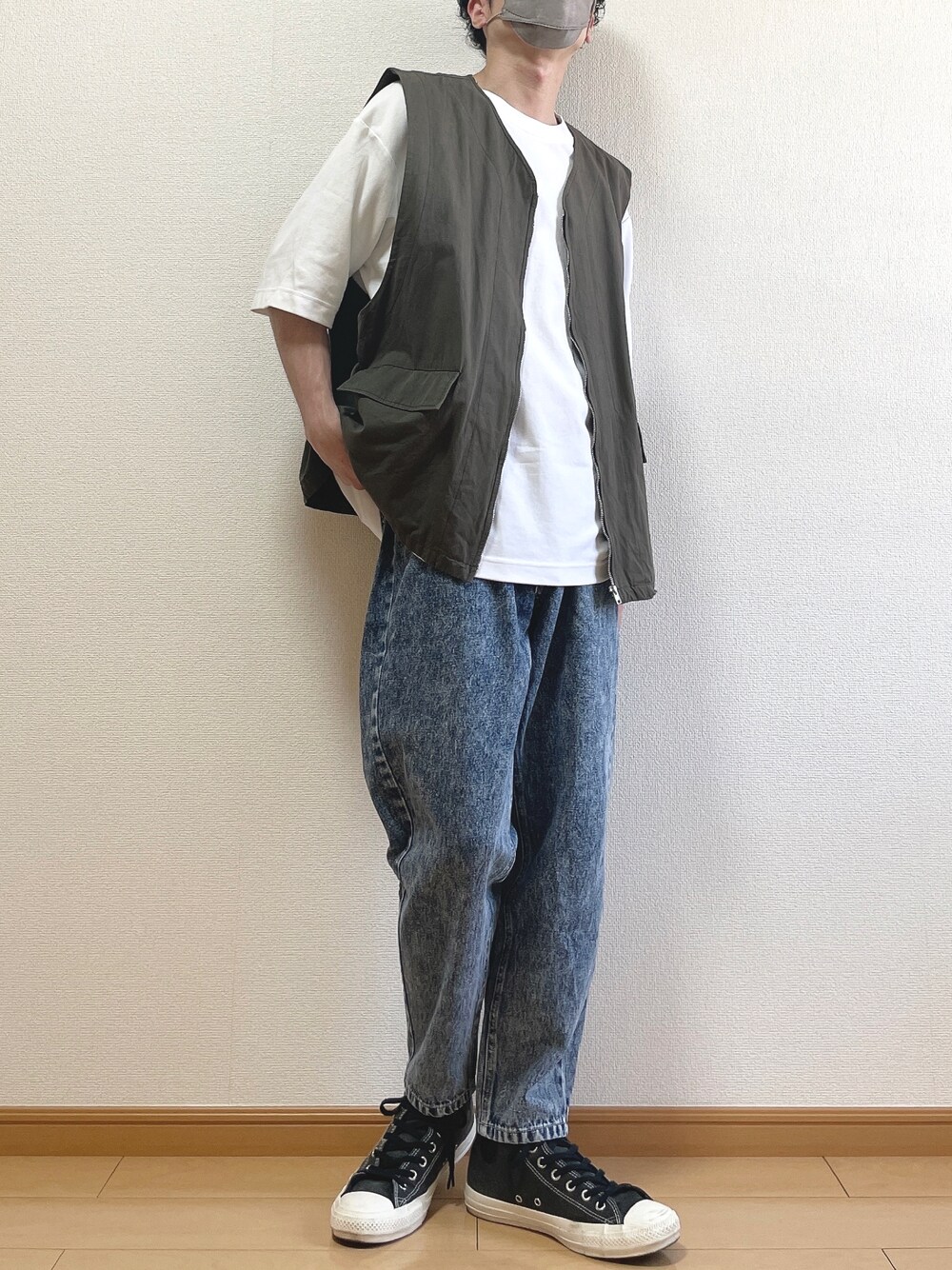 ゆうのベスト「Loose military vest/ルーズミリタリーベスト」を使ったコーディネート