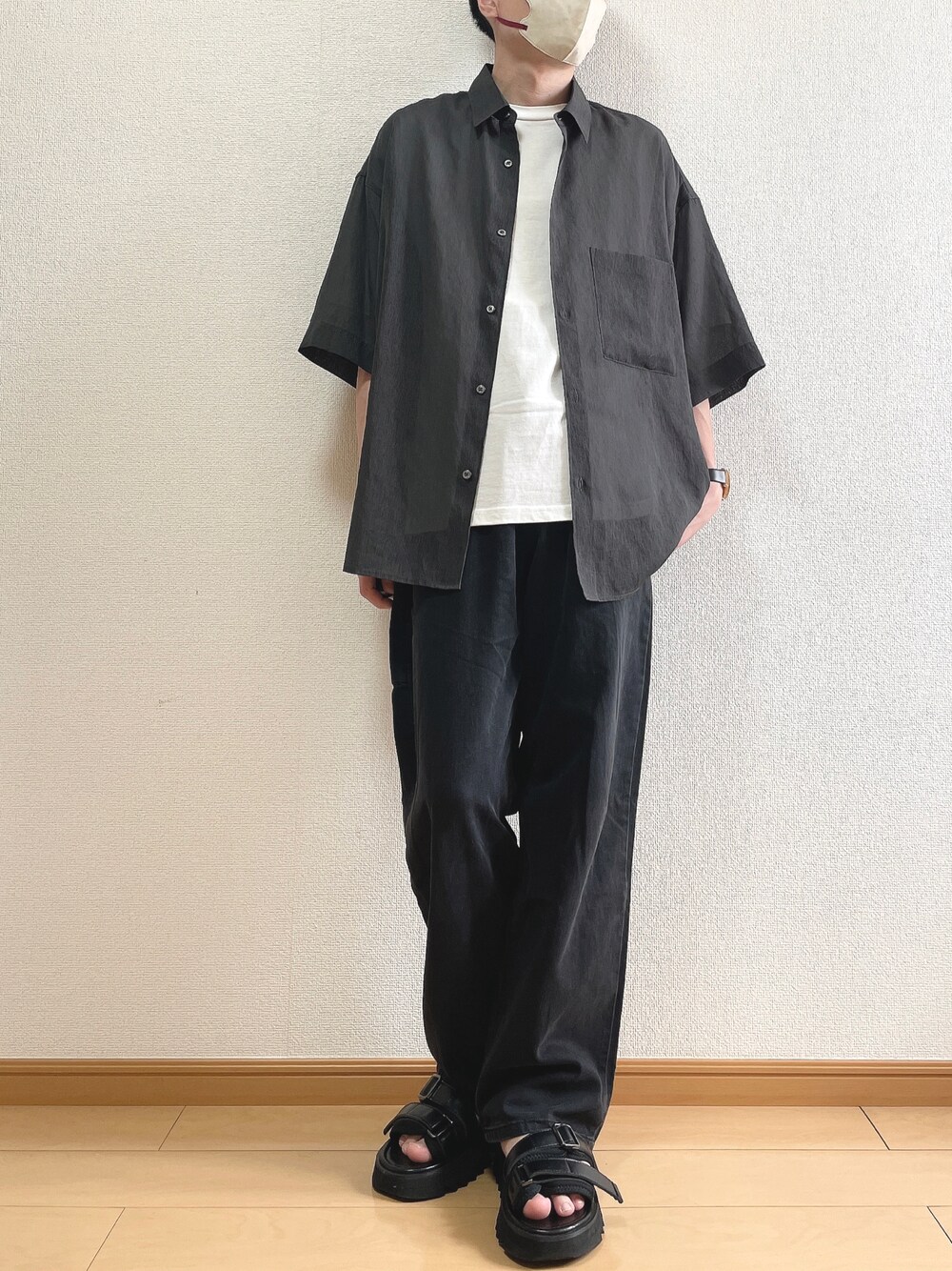 おはようございます😊 今回は 黒多めで大人っぽい夏コーデに 黒多めで暑苦しくなりやすいので トップスをシアーシャツで涼しいものに👌 【サイズ】 シャツ S Tシャツ S パンツ M サンダル M