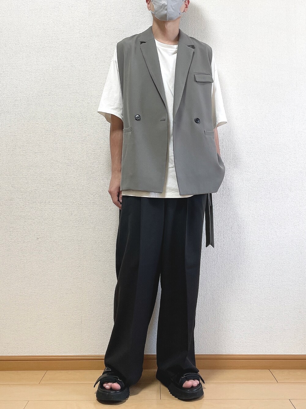 おはようございます☀ゆうです! 今回は モノトーン大人カジュアルコーデ スラックス、ジレで大人っぽさをいれつつの 夏コーデに🙆♀️ 【サイズ】 ジレ S Tシャツ L パンツ S サンダル M