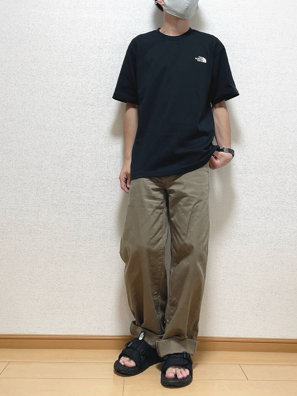 シンプルにTシャツ×チノパン合わせ! 【サイズ】 Tシャツ XL パンツ 61 サンダル 26