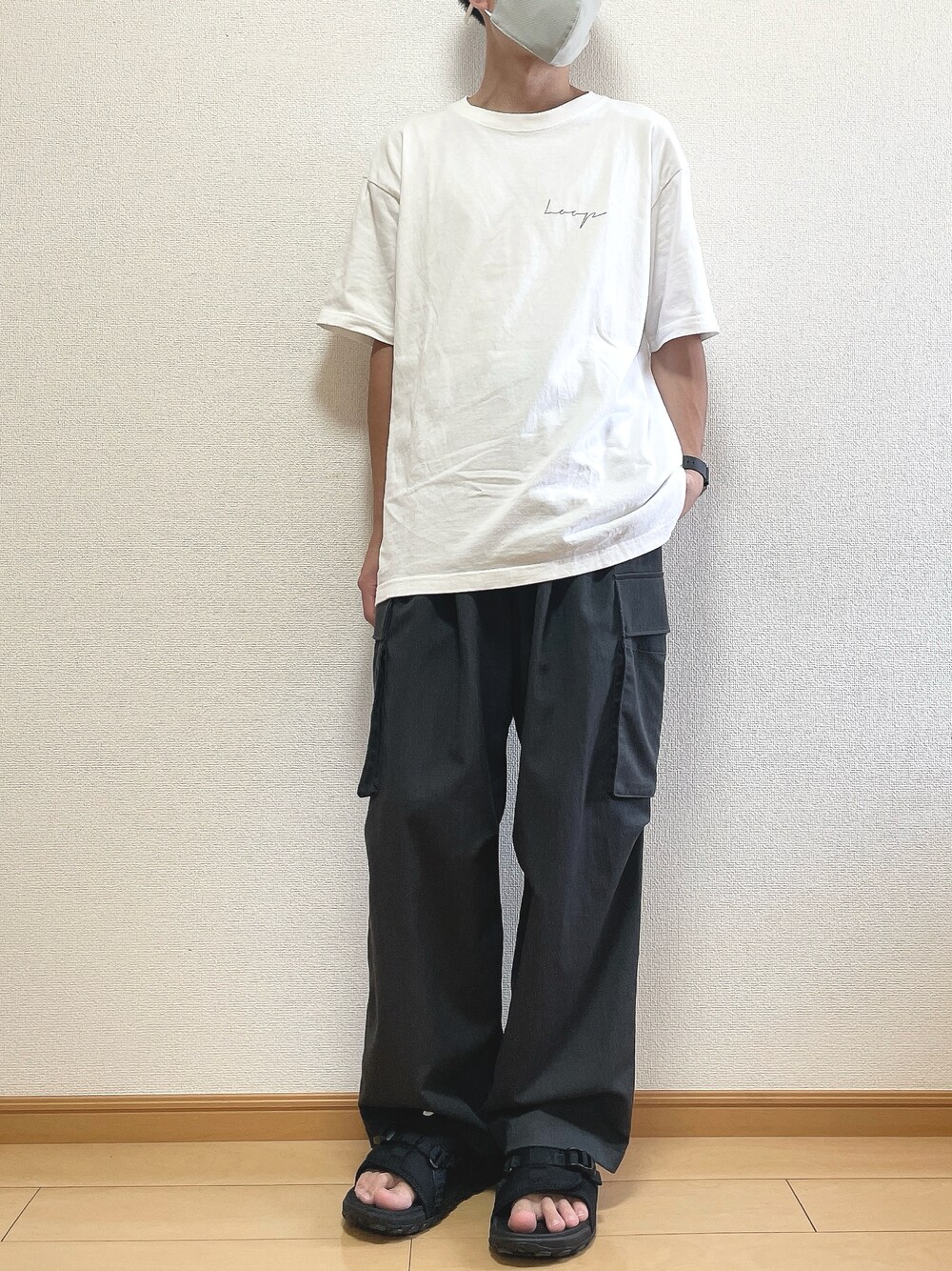 モノトーン+パックプリントでいいバランスに👍 【サイズ】 Tシャツ L パンツ S サンダル 26
