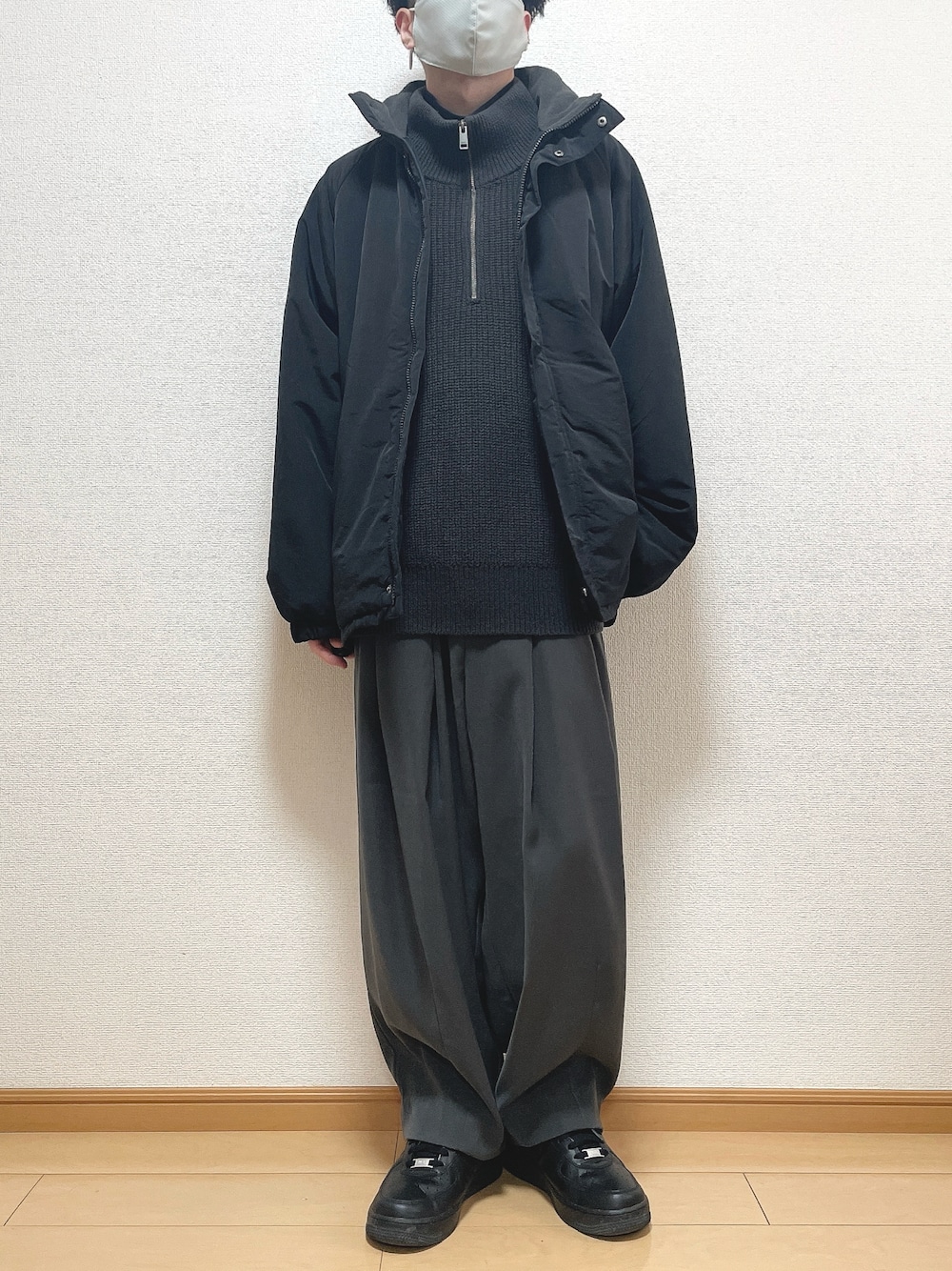 絶妙に違う色味でオールブラックに! 防寒しつつオシャレなかんじに♩ 【サイズ】 アウター L ニット M パンツ XS 靴 26.5