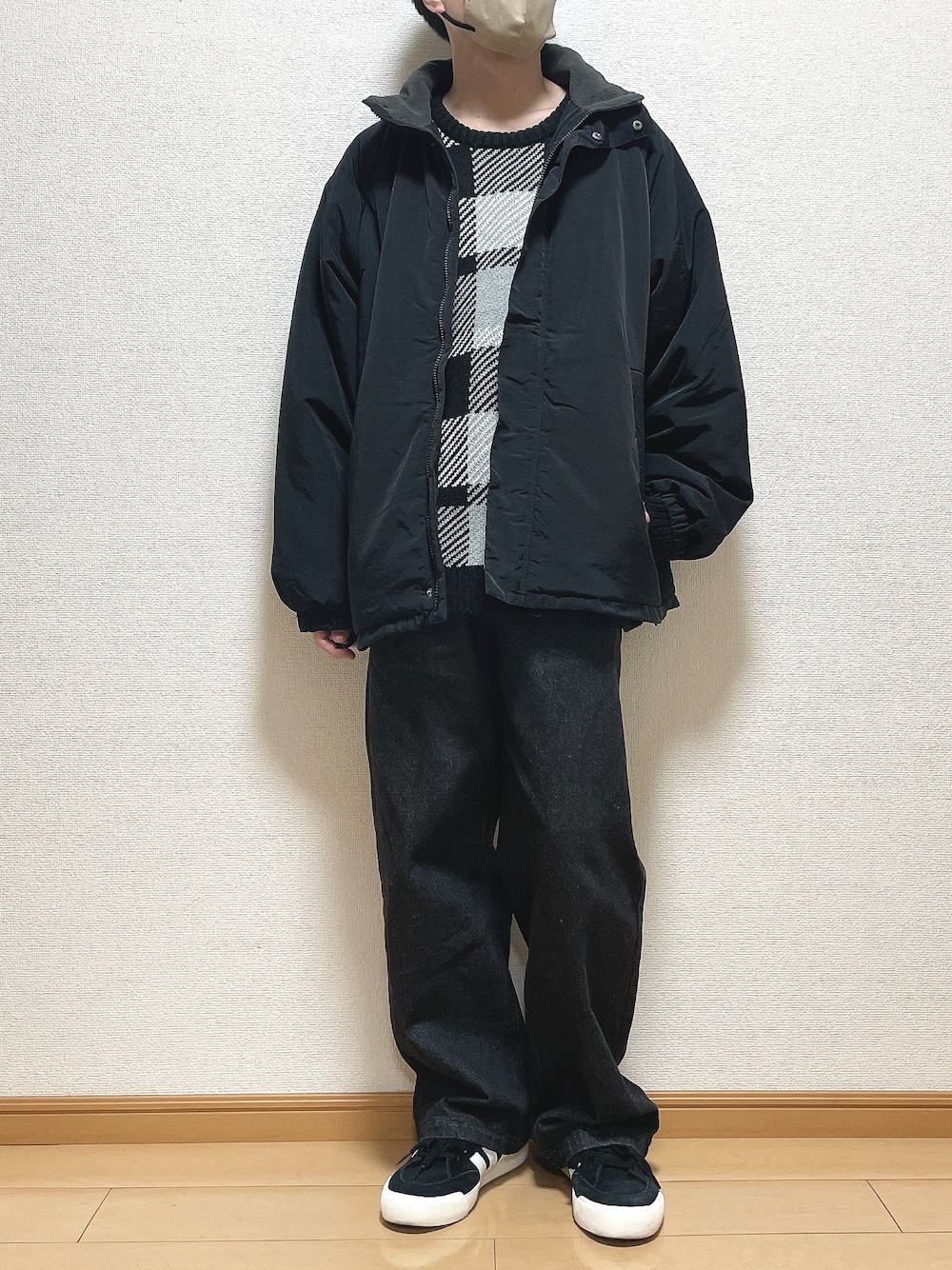 カジュアルながらもモノトーンで シンプルまとめ! 【サイズ】 アウター L ニット L パンツ S 靴 26.5