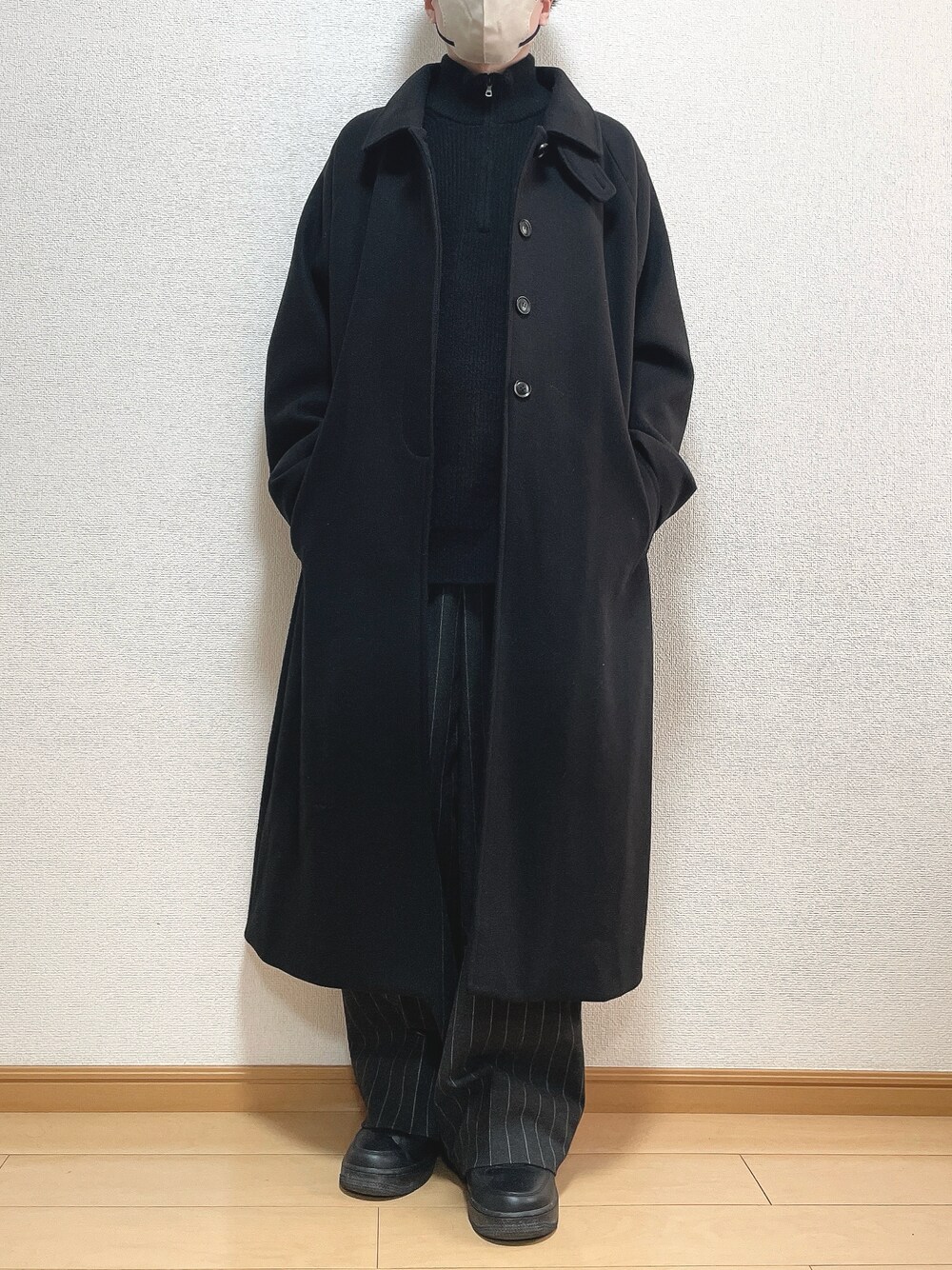 オールブラックコーデ! ストライがあるのでアクセントに👌 UNIQLOのスフレヤーンハーフジップに どハマり中! 【サイズ】 アウター L ニット XL パンツ S 靴 26.5