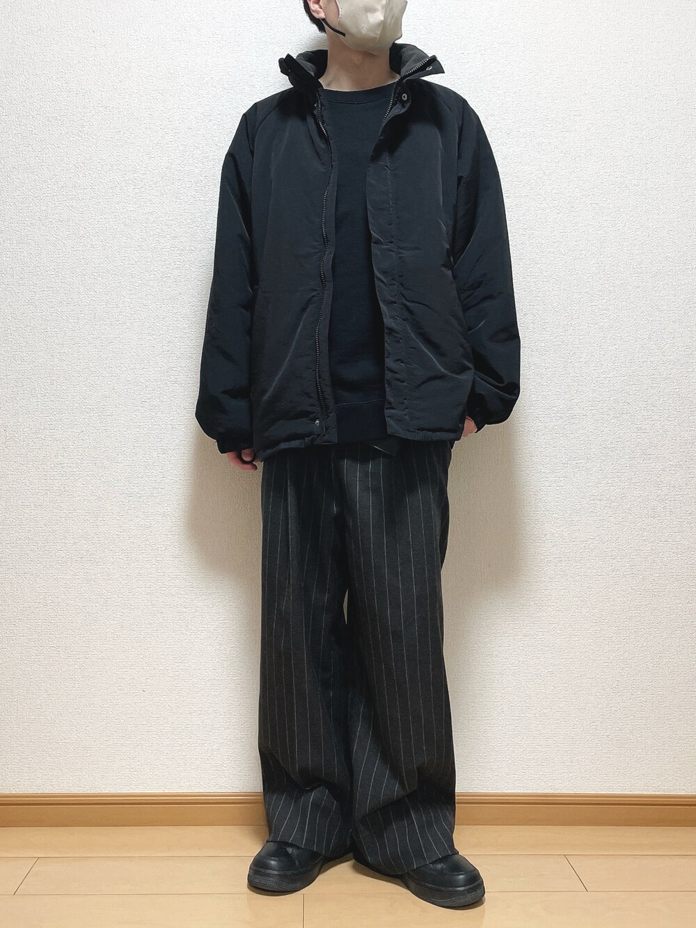 今年はブラックコーデにハマり中! 柄をいれて真っ黒すぎずに👌 【サイズ】 アウター L スウェット M パンツ S 靴 26.5