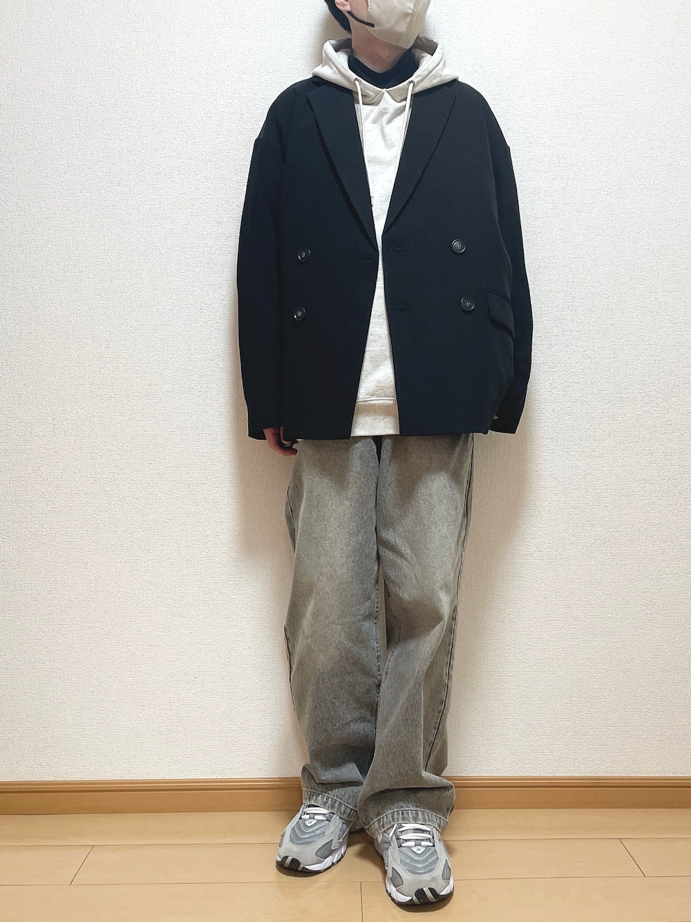 ゆうのテーラードジャケット「loose standard double tailored jacket / ルーズスタンダードダブルテーラードジャケット(セットアップ対応)」を使ったコーディネート