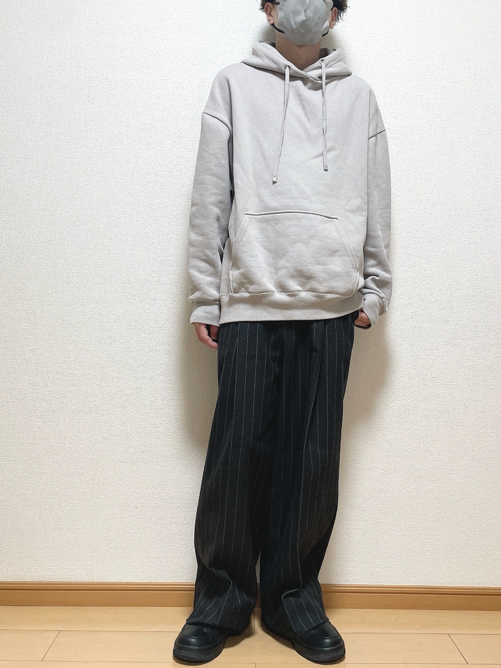 ラフながらもストライプパンツで シンプルすぎない感じに👌 【サイズ】 パーカー S パンツ S 靴 26.5