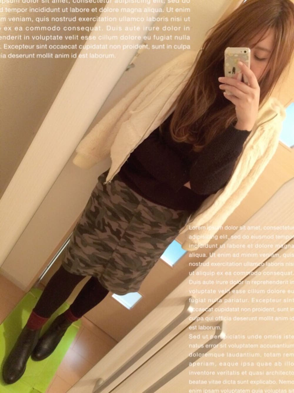 久々の更新!! あけましておめでとう\( ˙▿˙ )/ 昨年最後のコーデと カモフラスカートがかぶってるとゆぅ…( •́ㅿ•̀ ) 新鮮味がかける 今年一発目のコーデです\( ˙▿˙ )/ ファーコートと言っていいのか怪しい ファーブルゾンw
