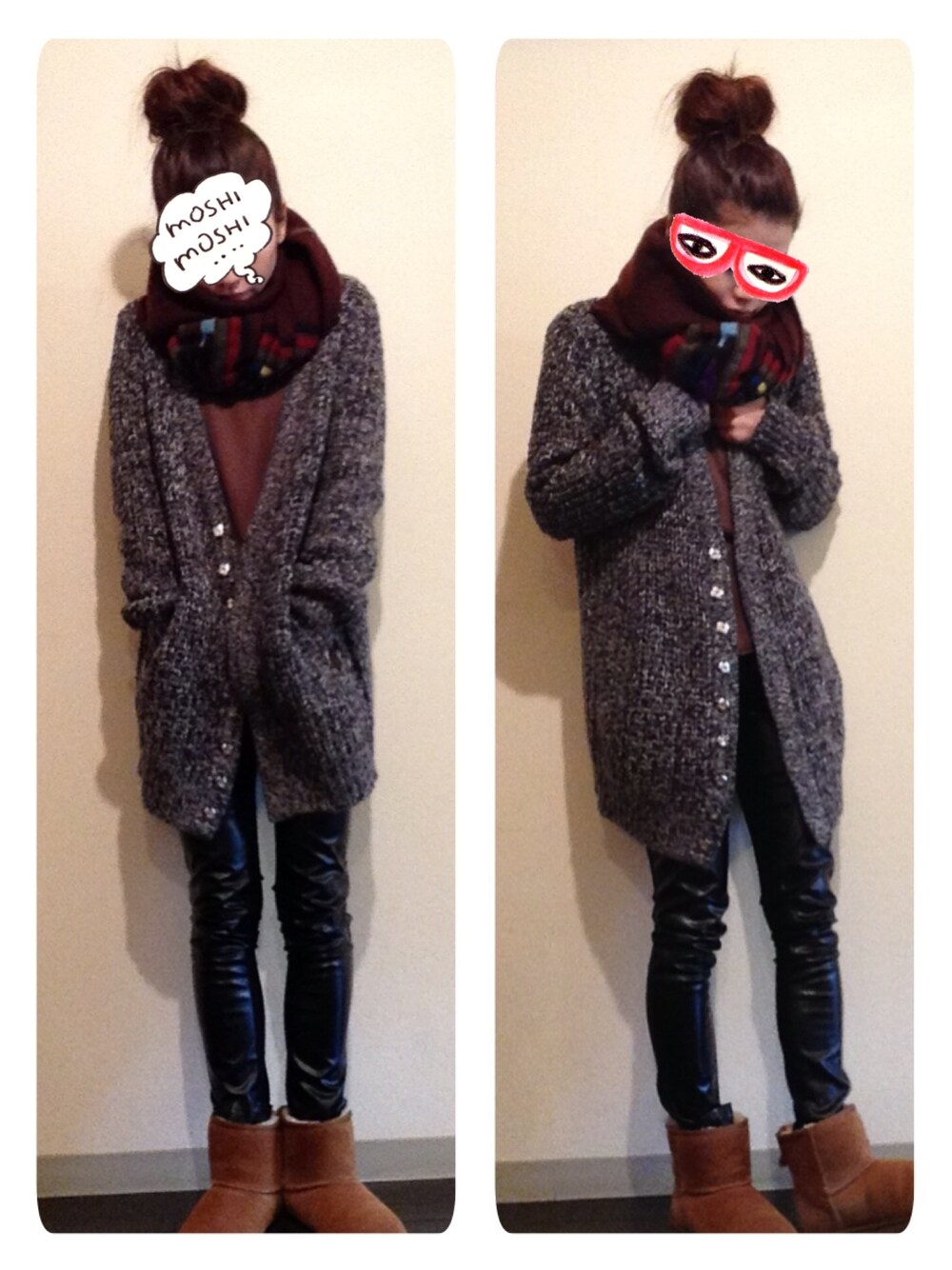 グレー系のショルダーバッグを着用したレディースの冬コーディネートの1枚目の写真