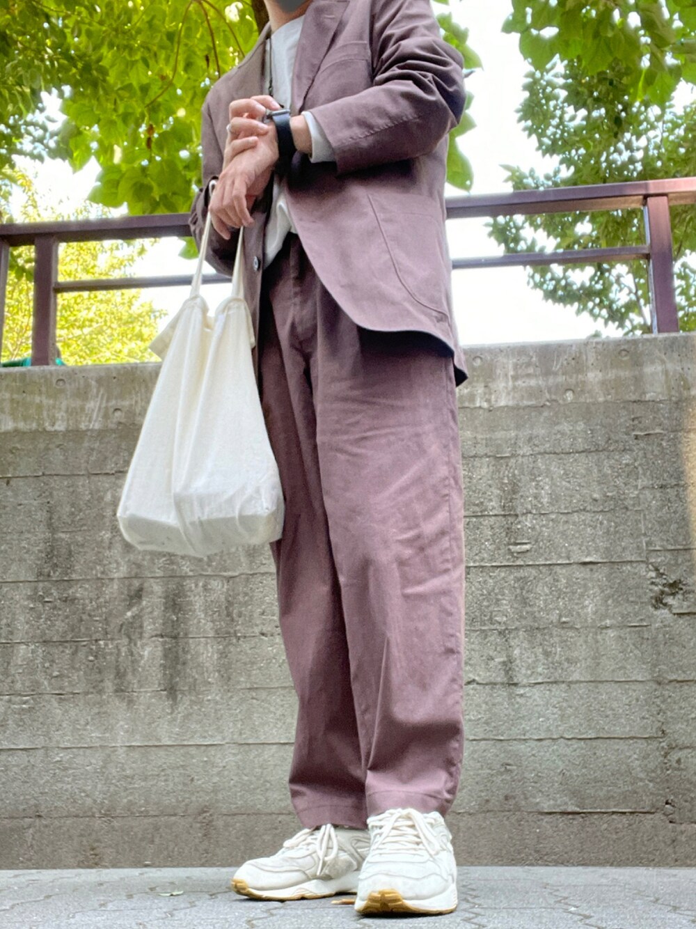 丸顔夫婦の2人的生活のスラックス「ユニクロU」を使ったコーディネート
