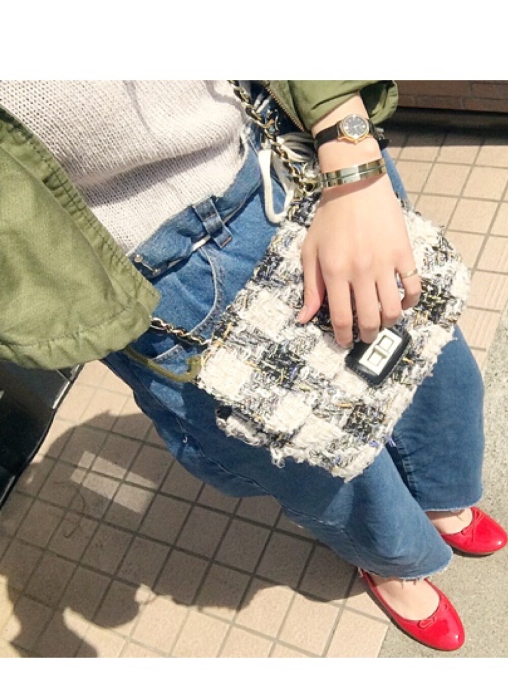 ご覧いただいて、ありがとうございます(•ᵕᴗᵕ•) 🌞🌞🌞🌞 私の王道コーデ笑 カーキにデニムって自分の中ではシンプルすぎるから差し色はがっつりビビットを! 赤い靴ってのはほんとに便利ですね〜( ˶´⚰︎`˵ )