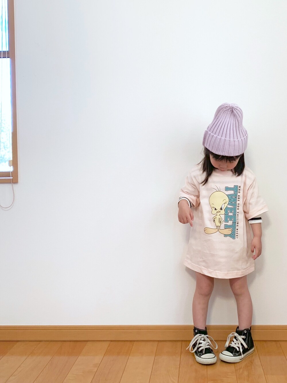 ご覧頂きありがとうござます❤️ 中のボーダースケスケ😂 GUのTシャツ、ピンクにミントが可愛いくて一目惚れ💕zaraのも悩んだけどこちらに🙈プチプラなのにさらにクーポンでお安く✨120にしたけど130でもっとワンピっぽくも可愛いかったかなぁ🤔 95.5㌢ 13㌕