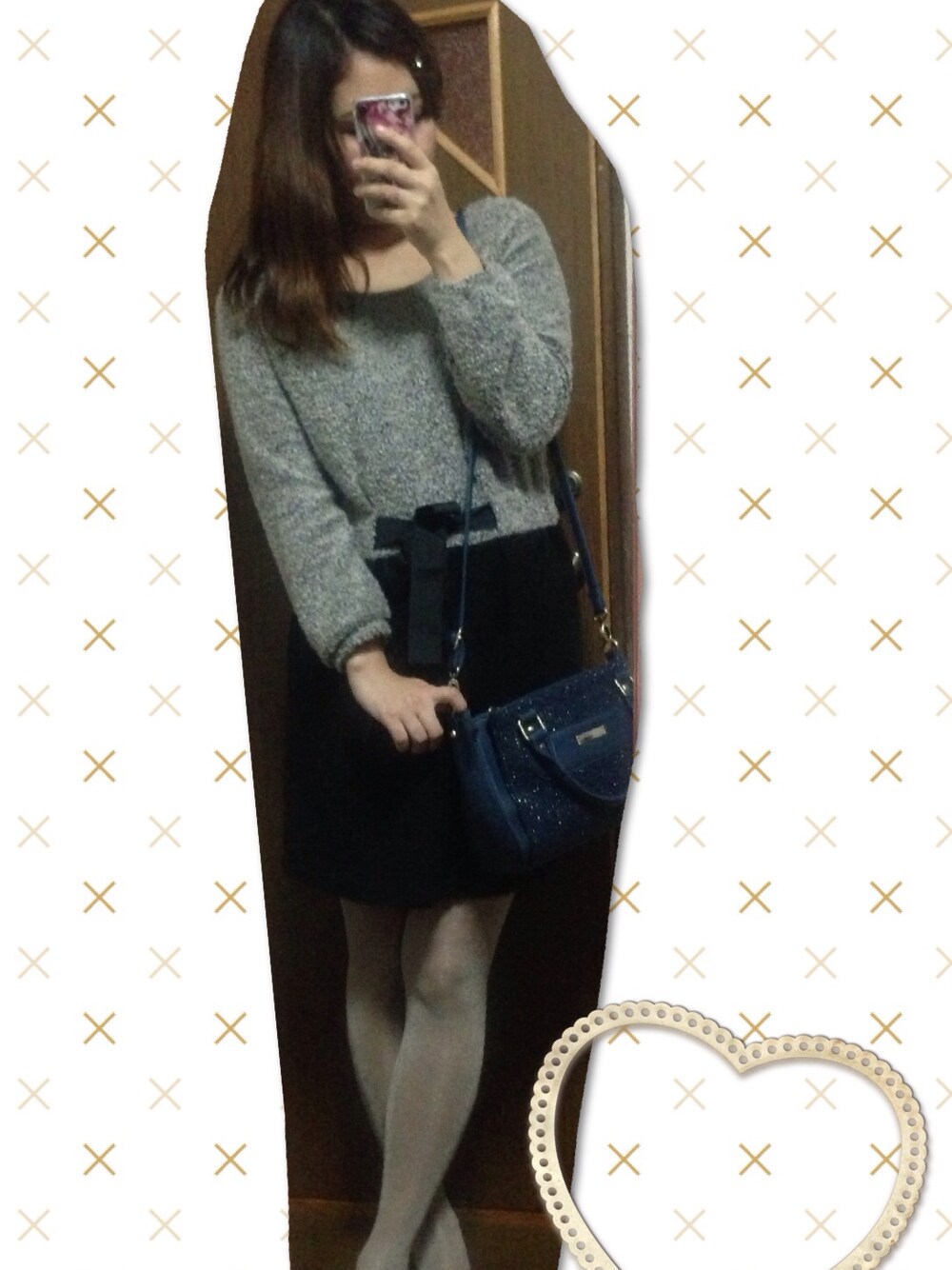 シンプルなもこもこ素材のワンピにラメ入りのタイツとバッグを合わせて華やかさをプラス。。 ファーティペットしてもいいかも( ・ω・ )