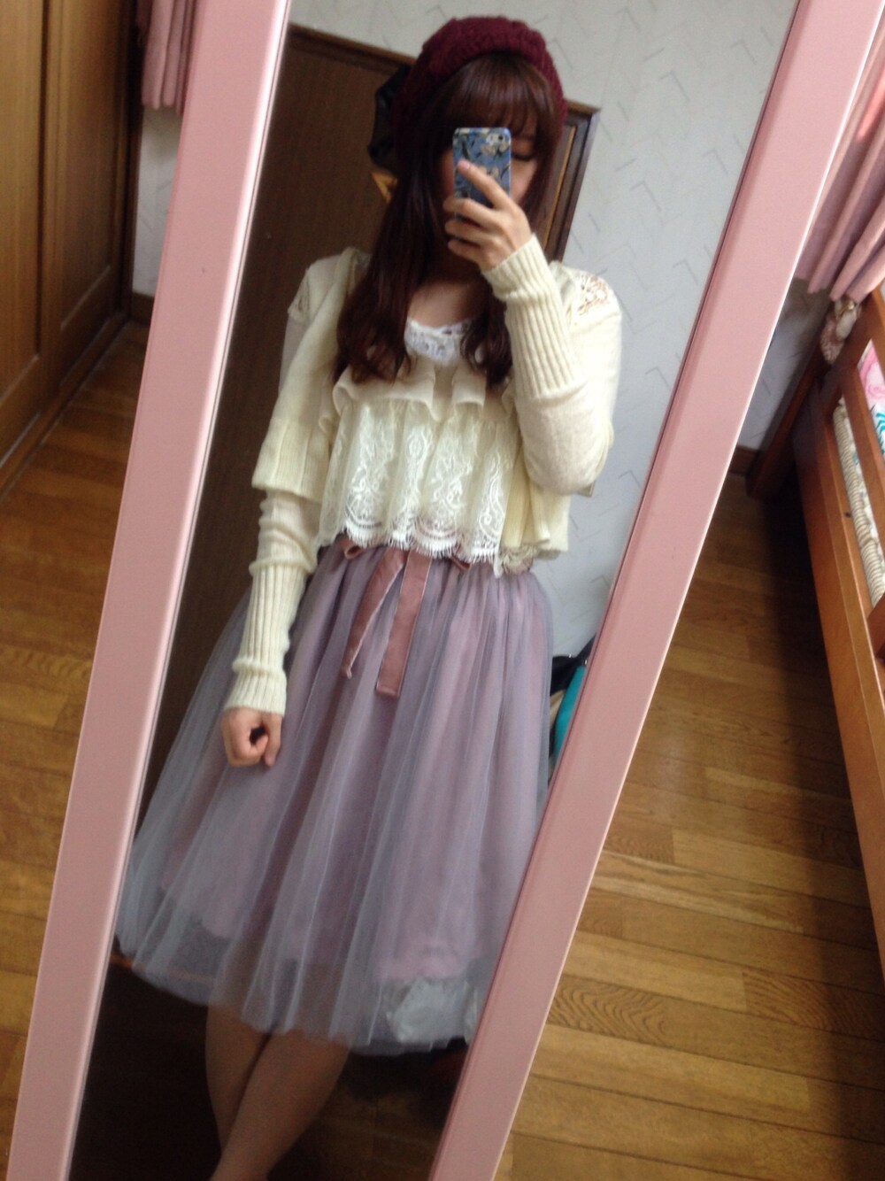 全身Etudeで女の子らしく(๑′ᴗ‵๑) 前回とはおりを変えただけですが。。 カーディガンは後ろがモチーフレースになってます ニット×レースの組み合わせ大好き リブが長いのもお気に入りです