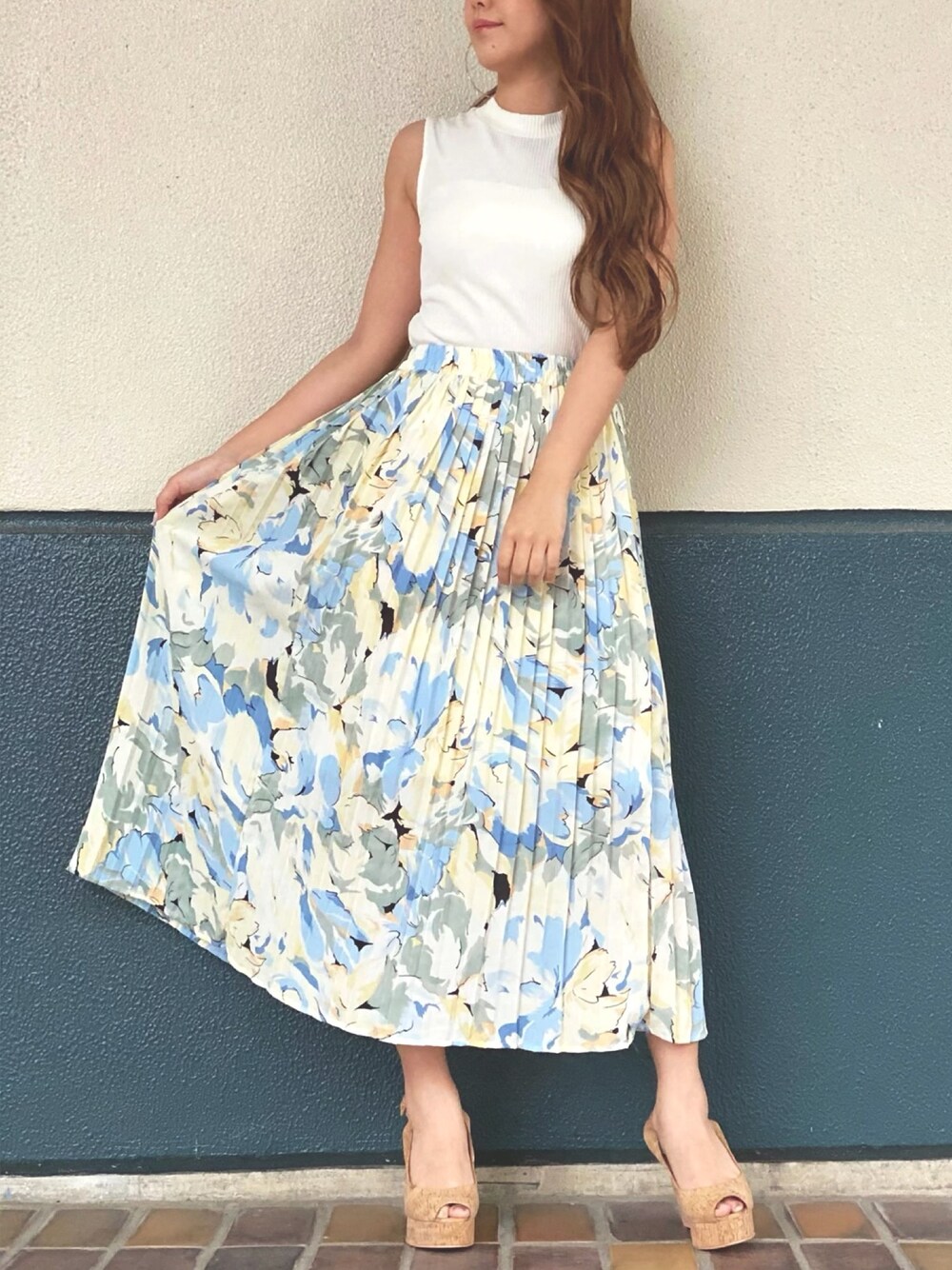 花柄×プリーツは一気に上品な大人に♡