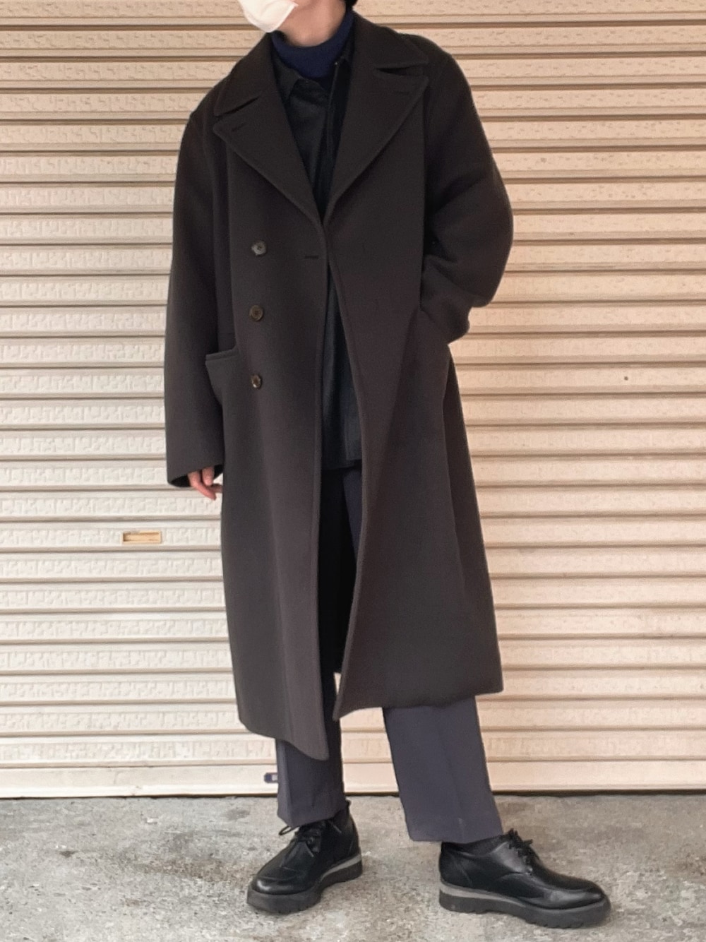 ご覧頂きありがとうございます!! 今回は、黒シャツ×コートで組んでみました!! 差し色としてブルーのタートルネックを入れてみました! いつもいいねとフォローありがとうございます! アウターS インナーM パンツS