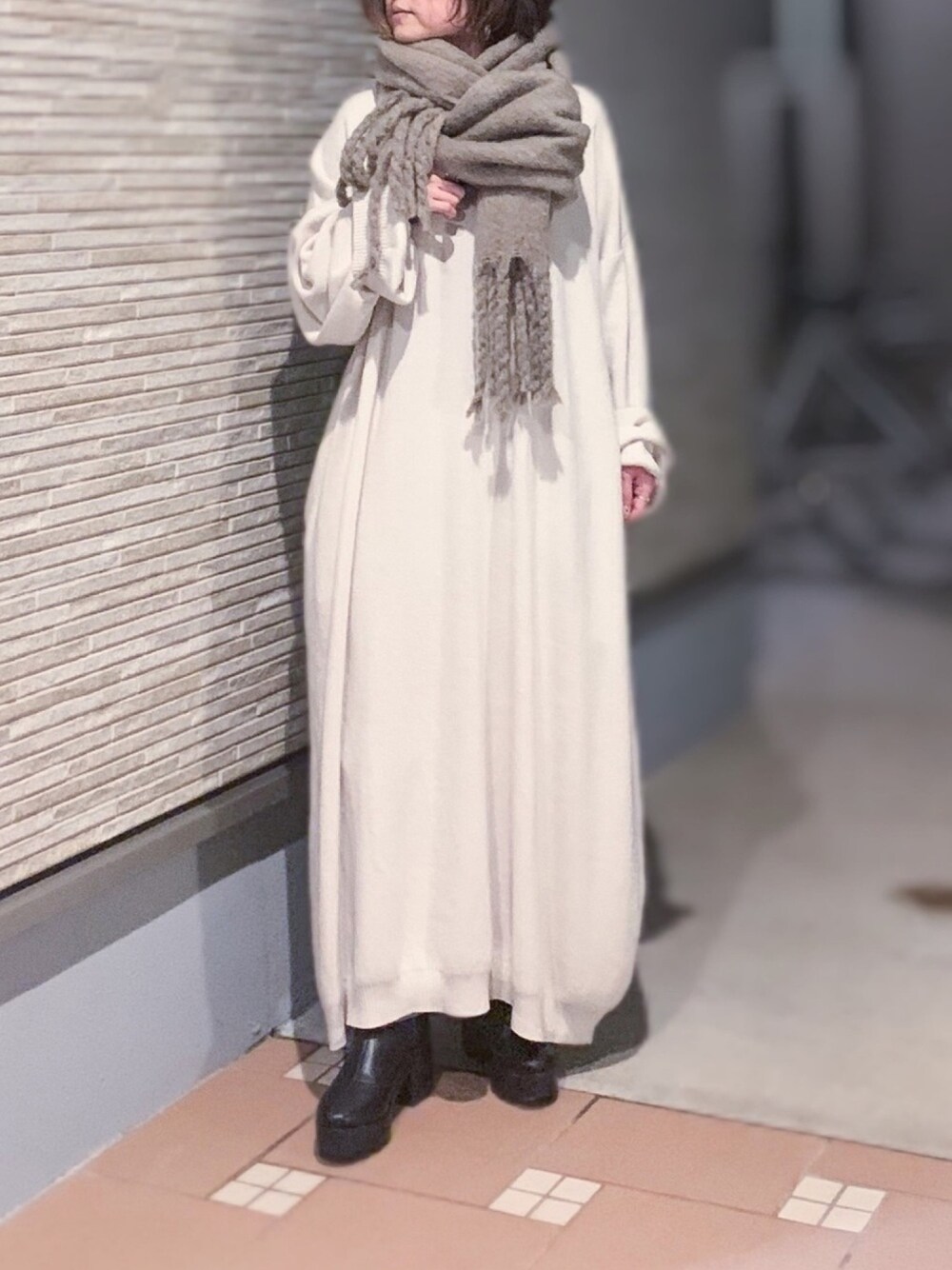 だぼっとニットワンピにボリューミーなマフラーぐるぐる。 好きなスタイル♡ レギンスも肌触りが良いのを仕込んでます♪