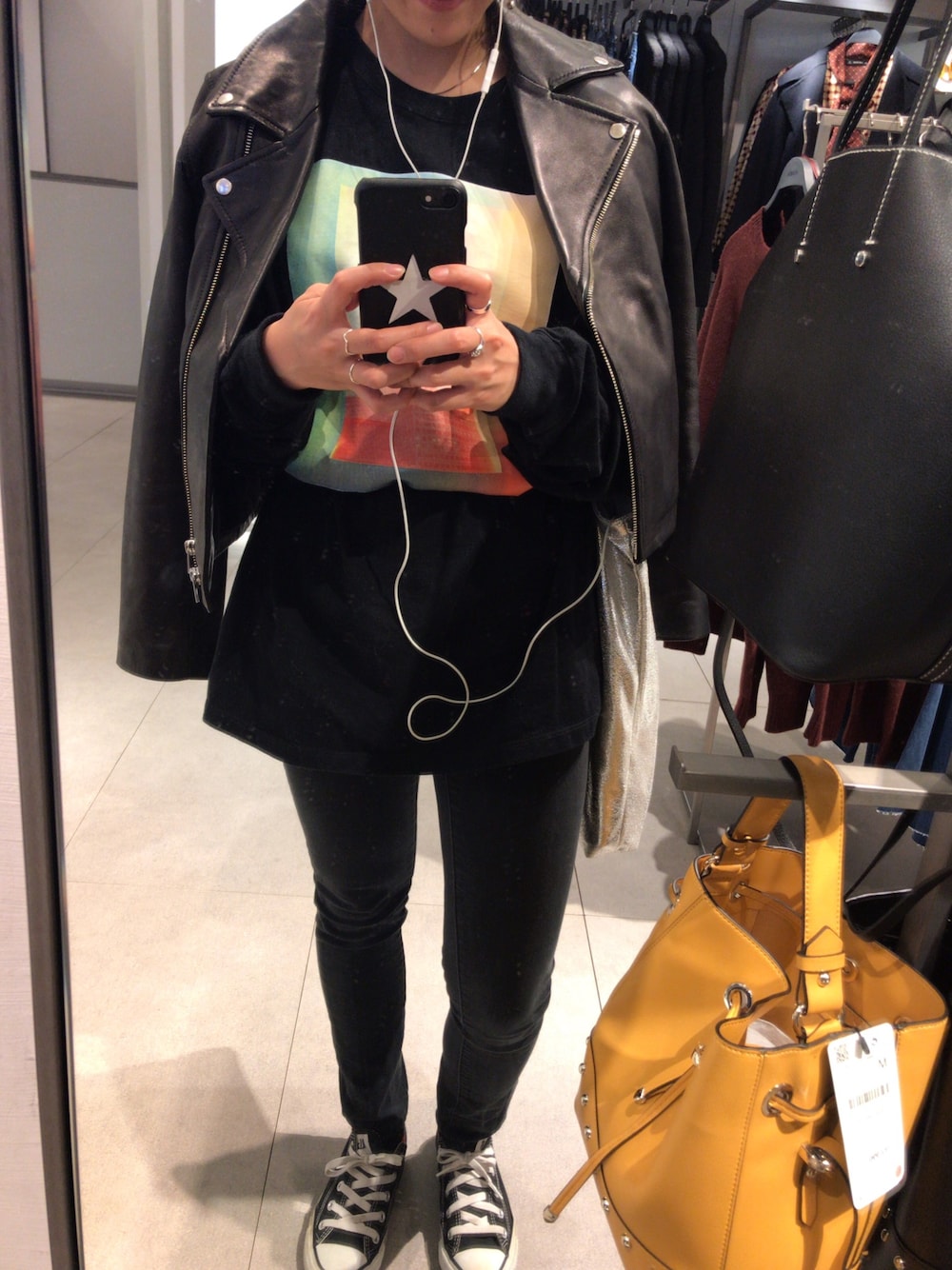 . ブラックコーデ🕴 .. ライダース×シルバーアクセサリー安定のかわいさ ロンTはベルトでしめてちょっと出してます☺︎︎写真わかりにくい、