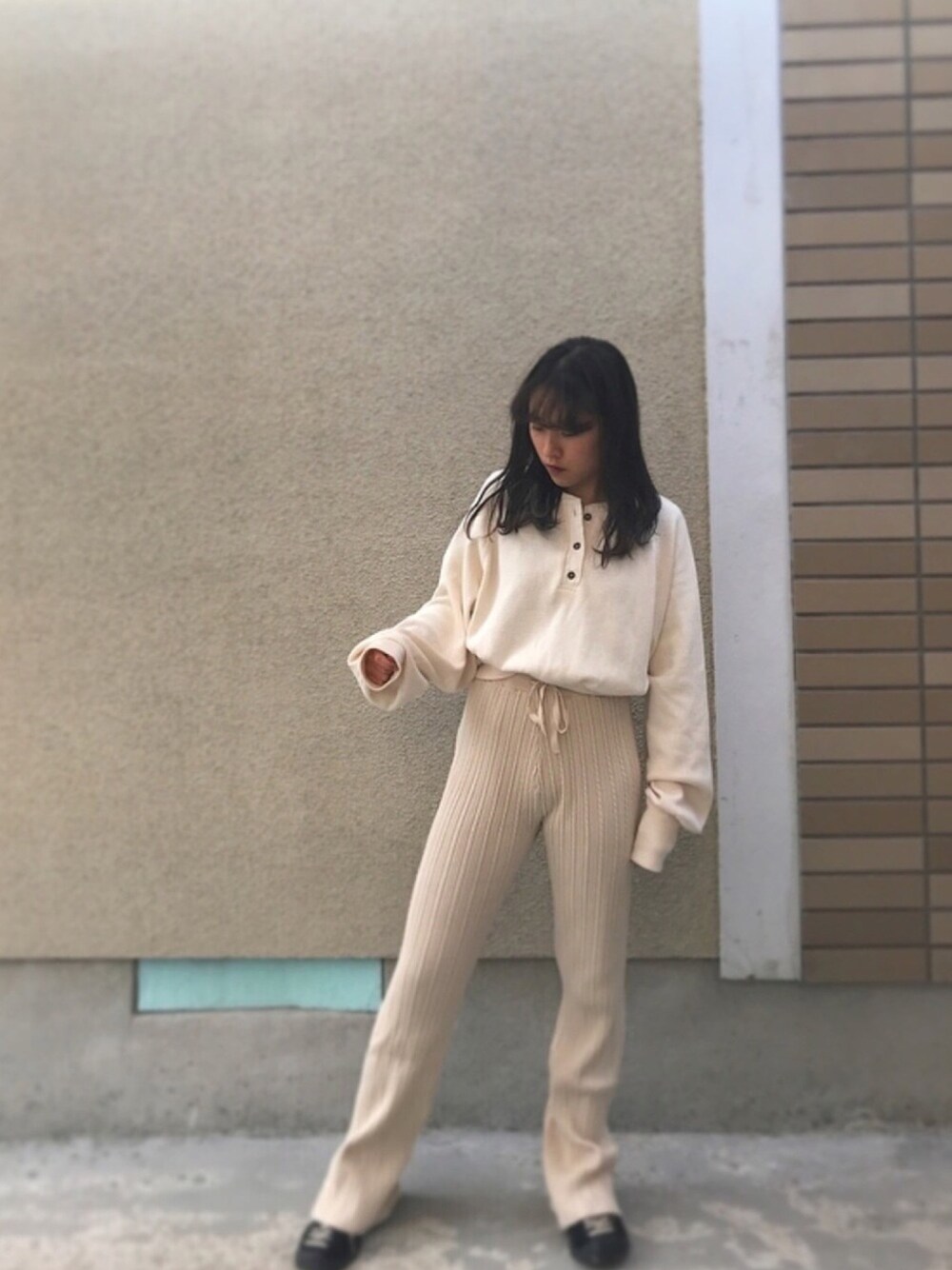 kastneちゃん カムバック part2 ホワイトコーデ🏳️ .. ニットパンツは厚底の靴とか履くと◎