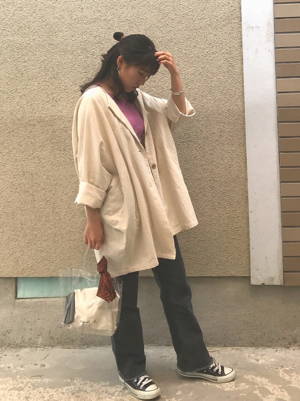 kastaneのドルマンBIGジャケット かわいすぎる、 形が最高、 今再入荷中みたいです〜♡ 久々にハーフアップにしてみた。