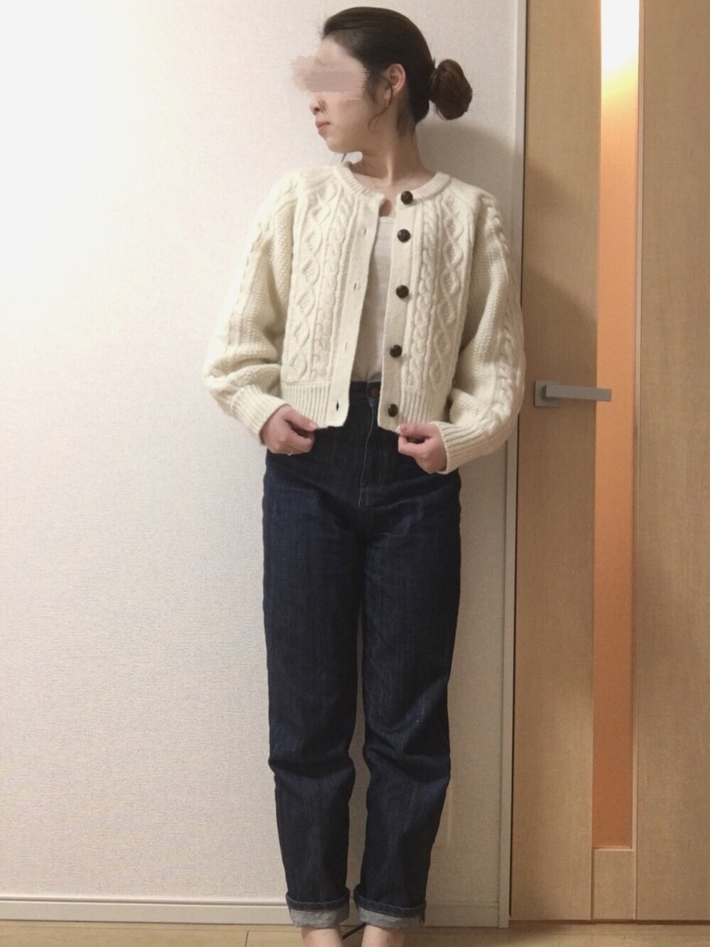 YUMIのカーディガン/ボレロ「ケーブルクルーネックカーディガン」を使ったコーディネート